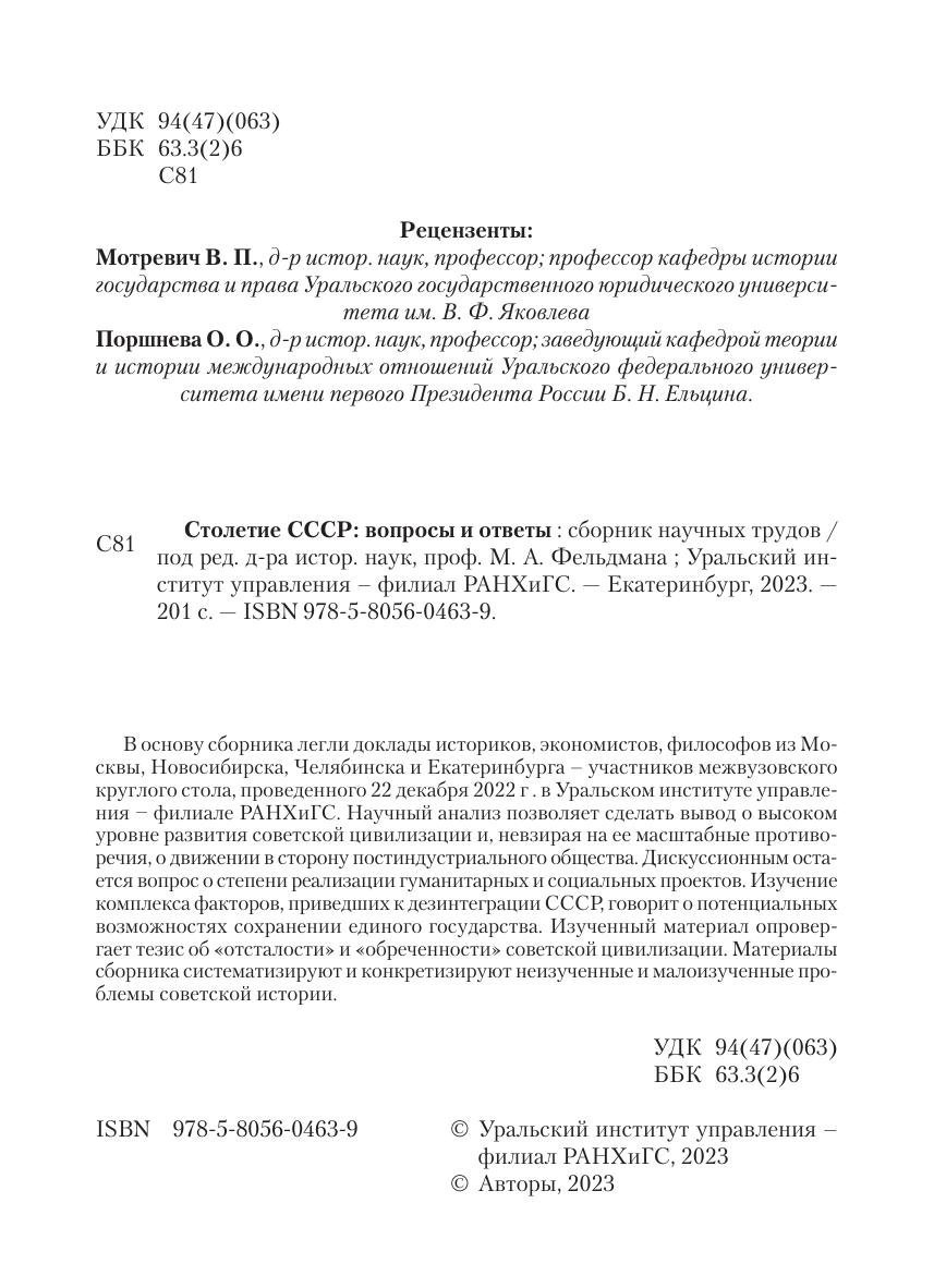 Столетие СССР: вопросы и ответы: сборник научных трудов