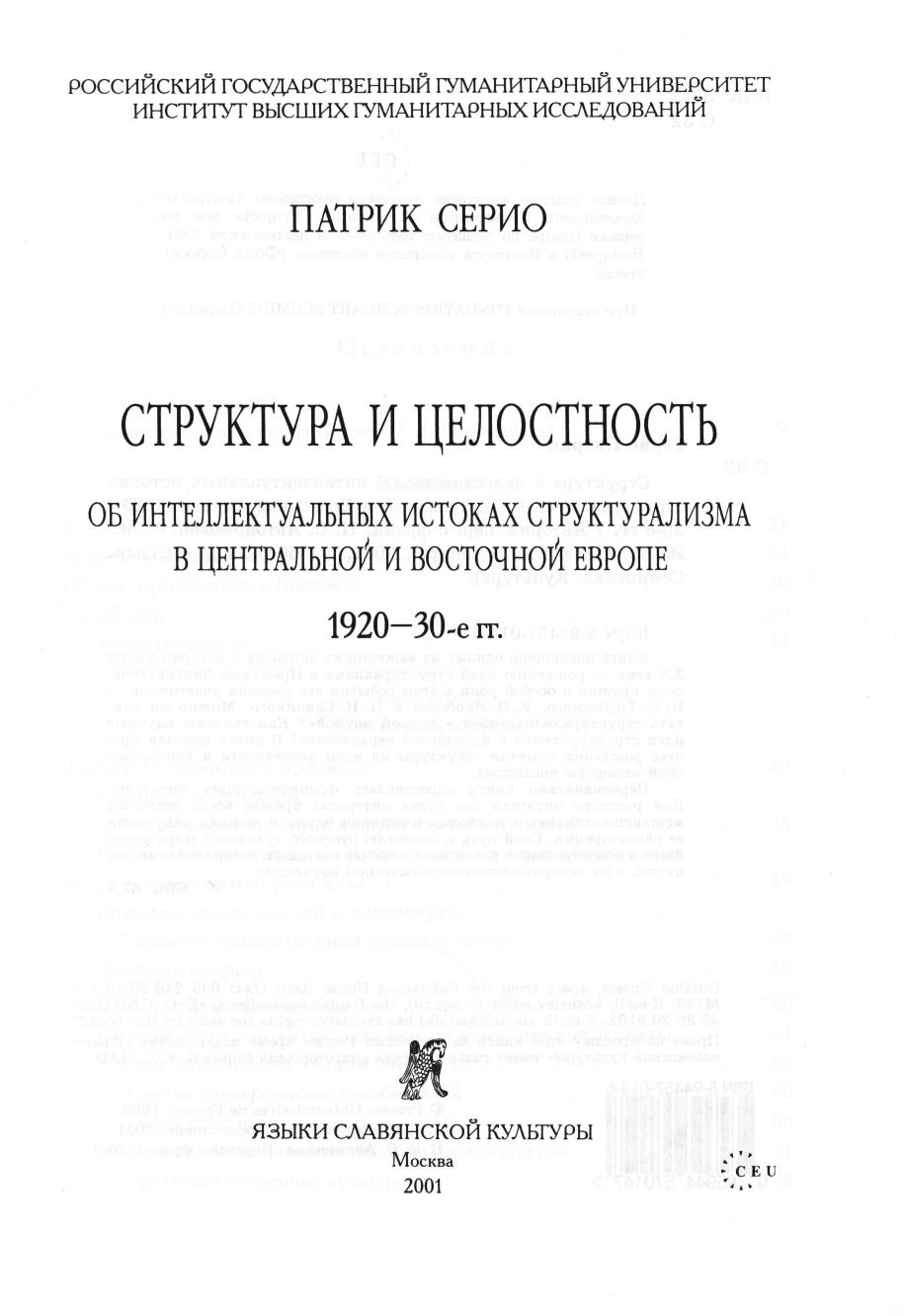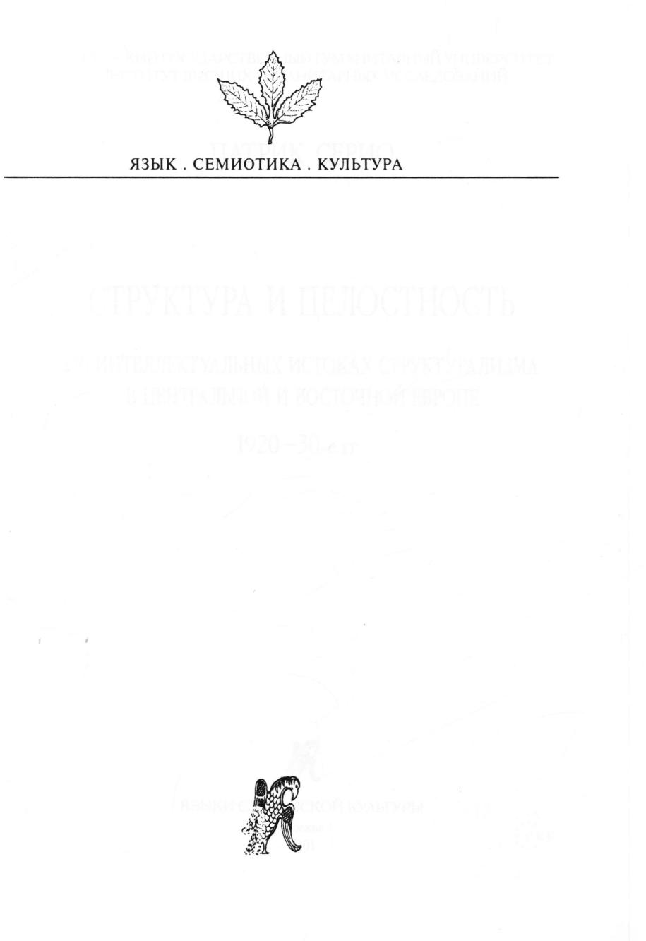 Структура и целостность: Об интеллектуальных истоках структурализма в Центральной и Восточной Европе. 1920–30-е гг.