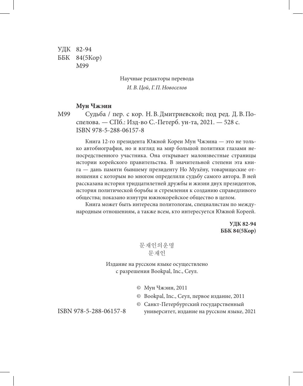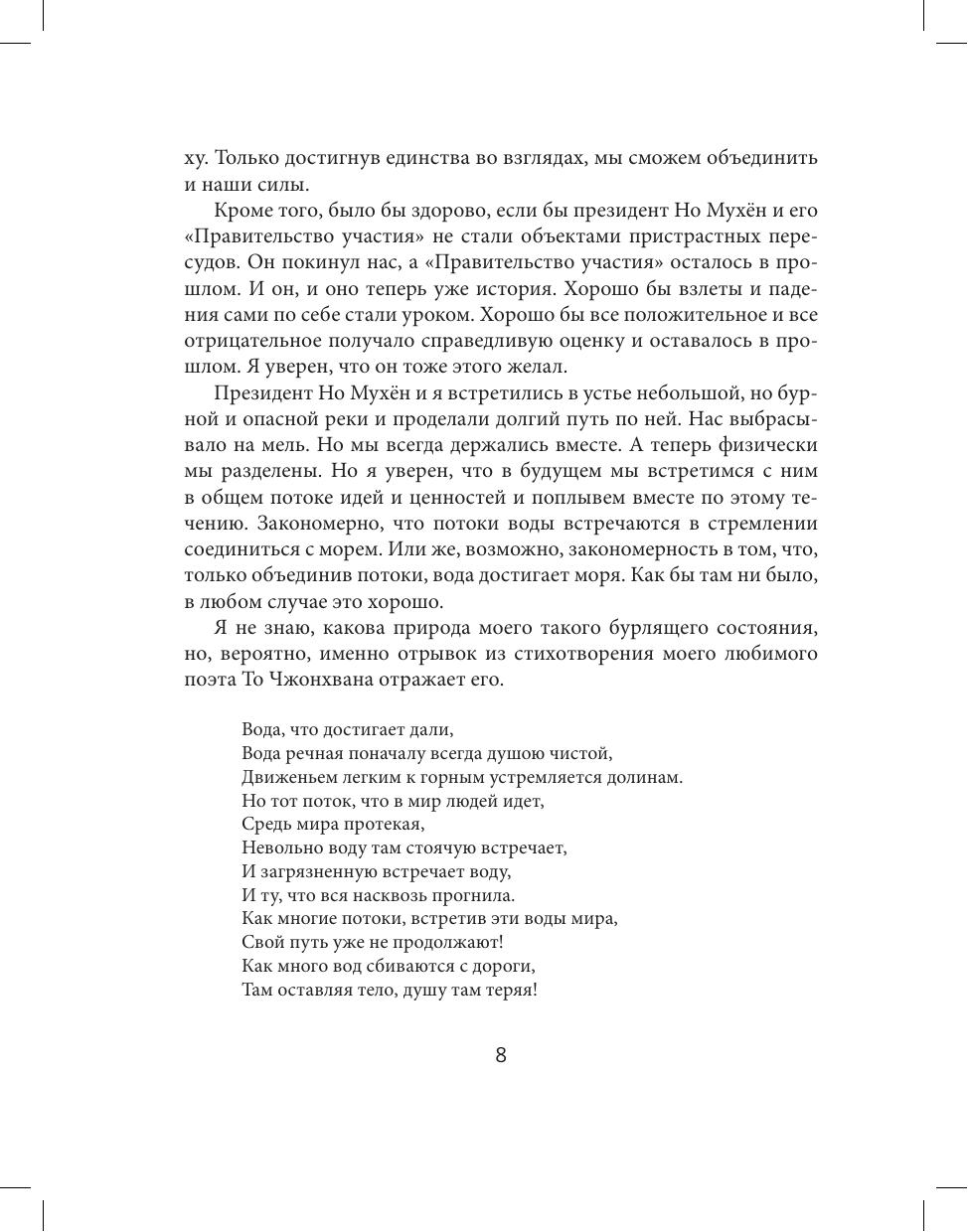 Книга 12-го президента Южной Кореи Мун Чжэина - это не только автобиография, но и взгляд на мир большой политики глазами непосредственного участника. Она открывает малоизвестные страницы истории корейского правительства. В значительной степени эта книга - дань памяти бывшему президенту Но Мухёну, товарищеские отношения с которым во многом определили судьбу самого автора. В ней рассказана история тридцатилетней дружбы и жизни двух президентов, история политической борьбы и стремления к созданию справедливого общества; показано изнутри южнокорейское общество в целом.