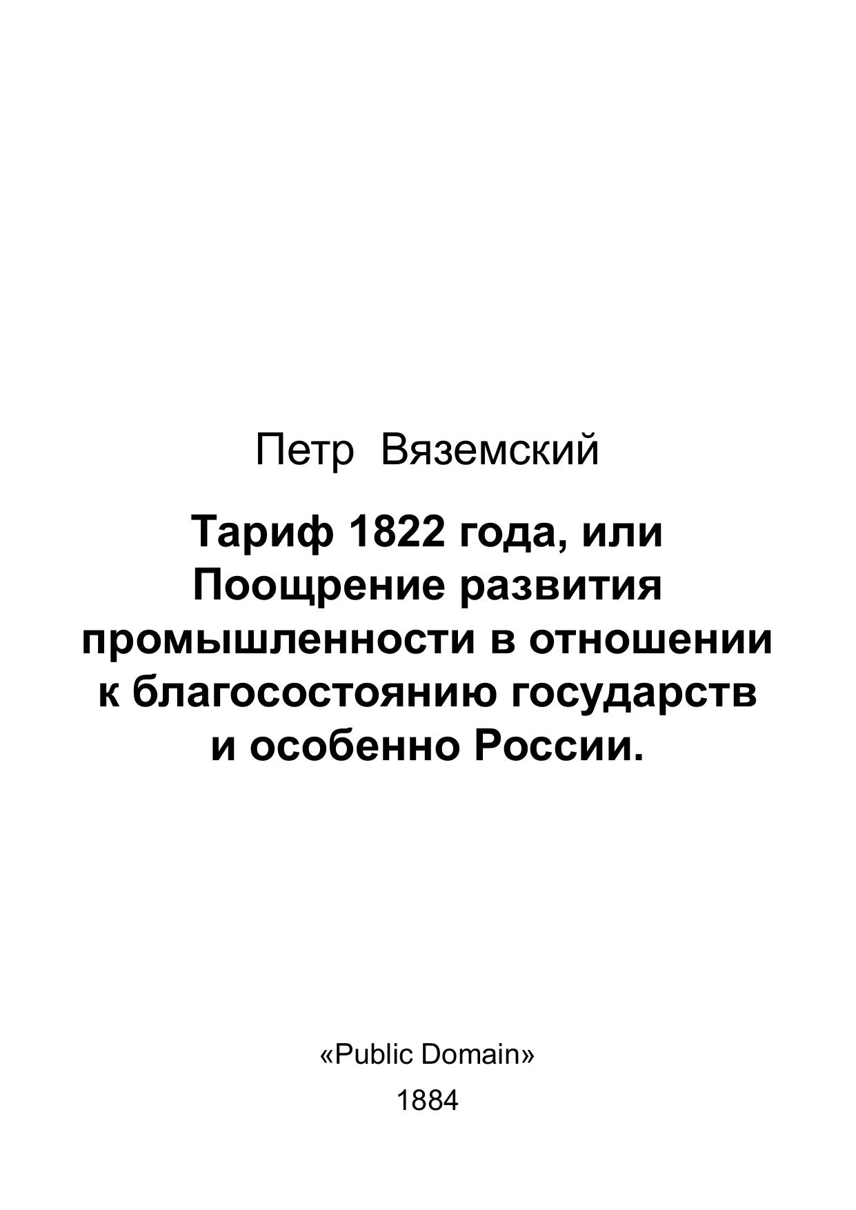 Тариф 1822 года, или Поощрение развития промышленности в отношении к благосостоянию государств и особенно России
