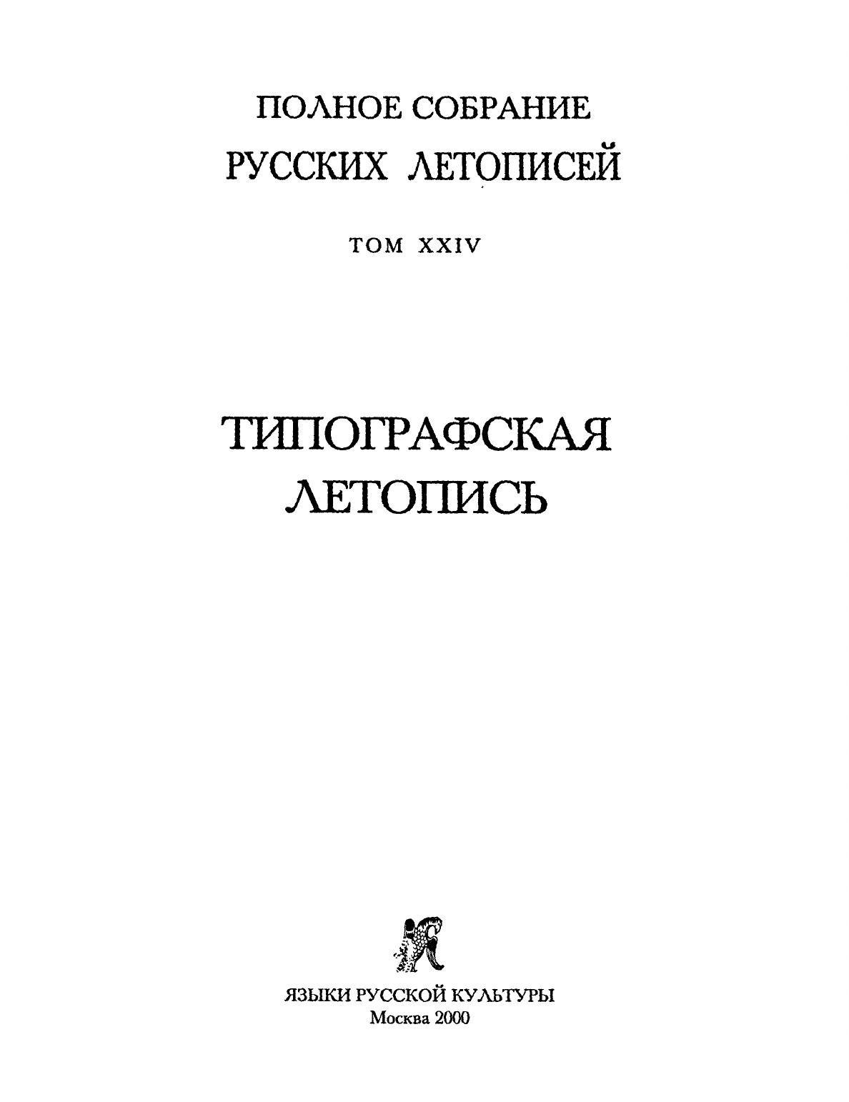 Типографская летопись (Полное собрание русских летописей. Т. ХХIV)
