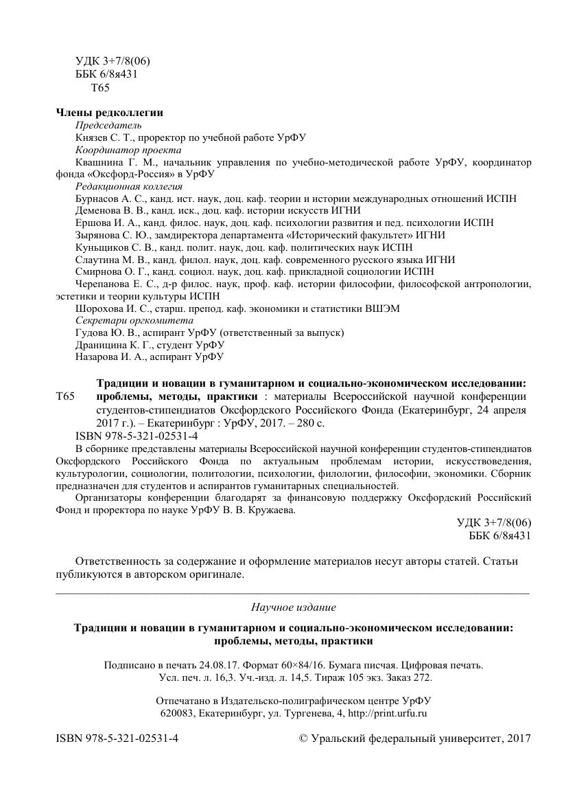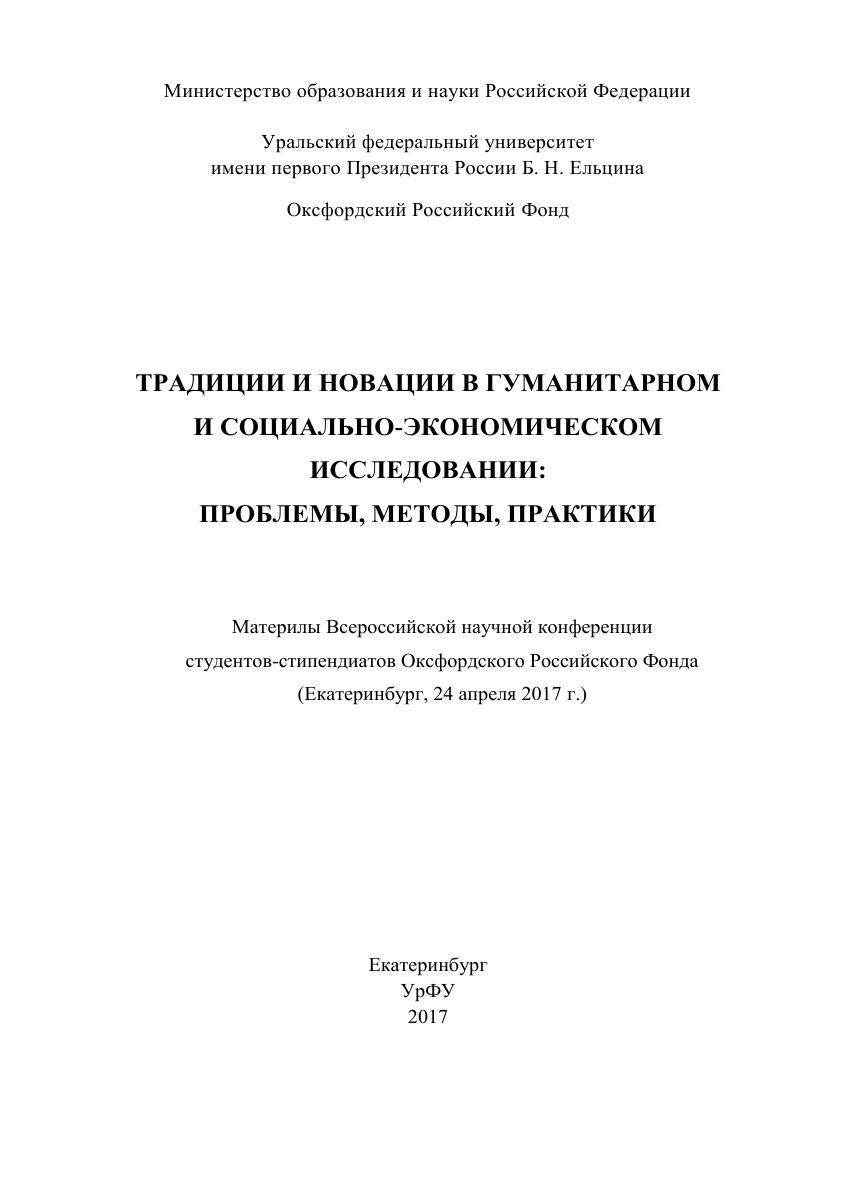 Традиции и новации в гуманитарном и социально-экономическом исследовании: проблемы, методы, практики: материалы Всероссийской научной конференции студентов-стипендиатов Оксфордского Российского Фонда (Екатеринбург, 24 апреля 2017 г.).