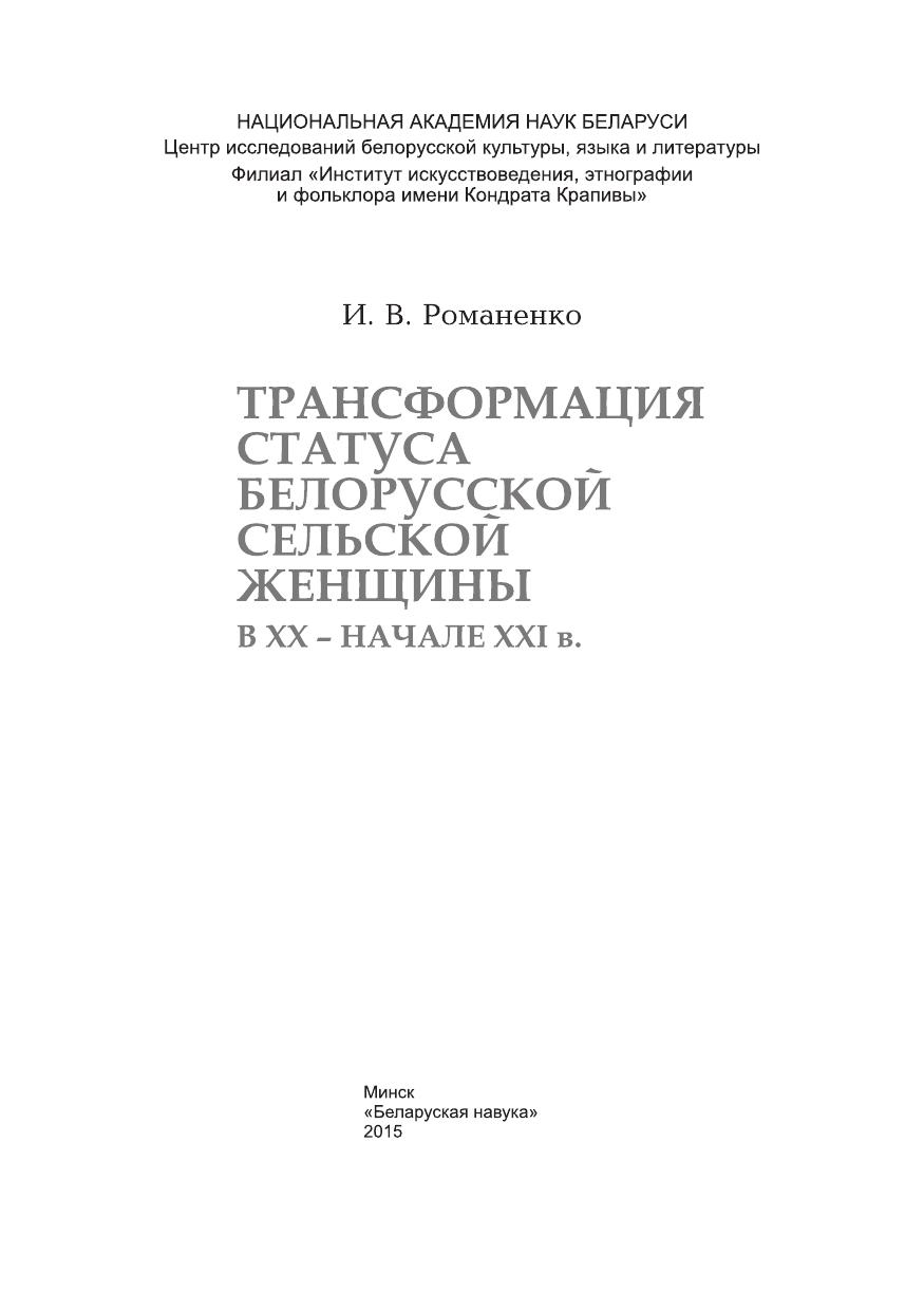Трансформация статуса белорусской сельской женщины в ХХ – начале ХХI в.