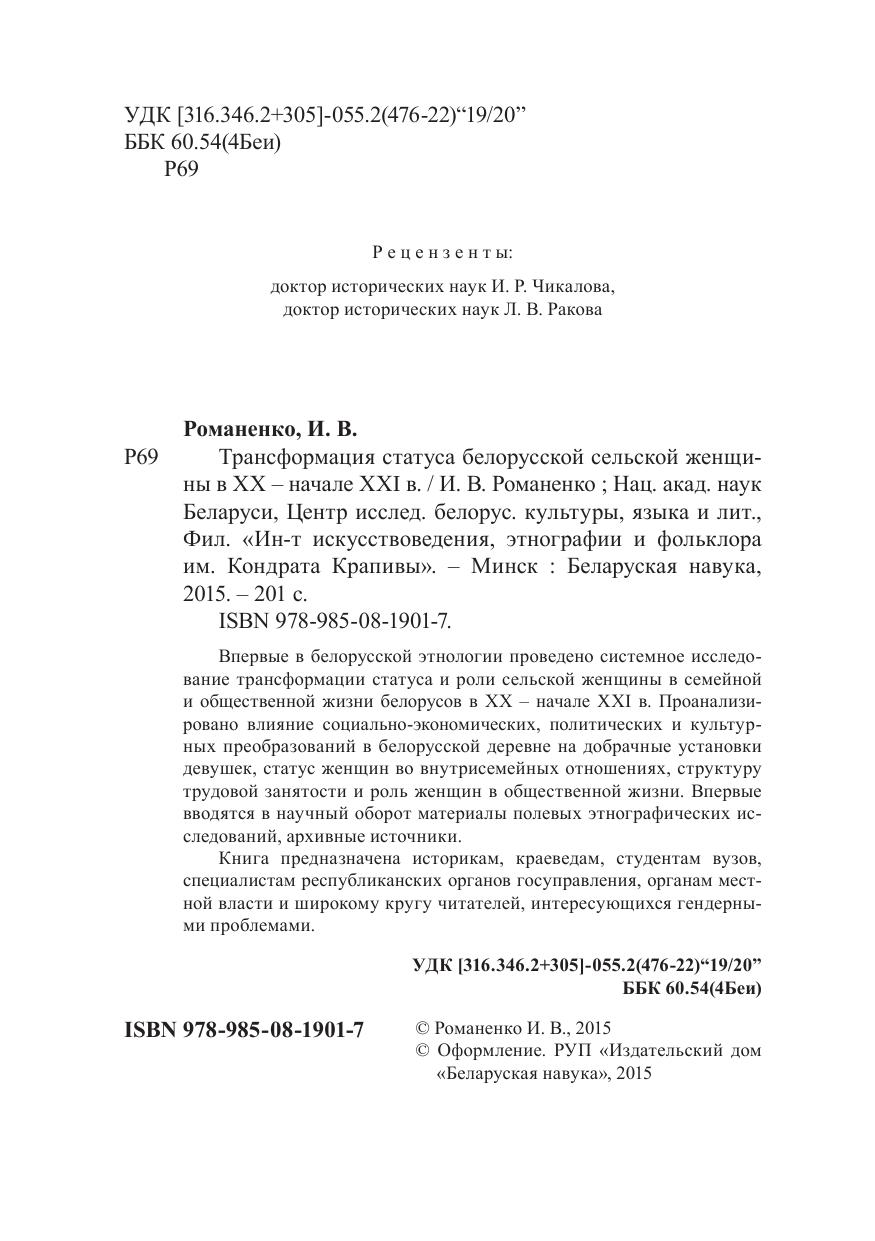 Впервые в белорусской этнологии проведено системное исследование трансформации статуса и роли сельской женщины в семейной и общественной жизни белорусов в ХХ – начале XХI в. Проанализировано влияние социально-экономических, политических и культурных преобразований в белорусской деревне на добрачные установки девушек, статус женщин во внутрисемейных отношениях, структуру трудовой занятости и роль женщин в общественной жизни. Впервые вводятся в научный оборот материалы полевых этнографических исследований, архивные источники. Книга предназначена историкам, краеведам, студентам вузов, специалистам республиканских органов госуправления, органам местной власти и широкому кругу читателей, интересующихся гендерными проблемами.