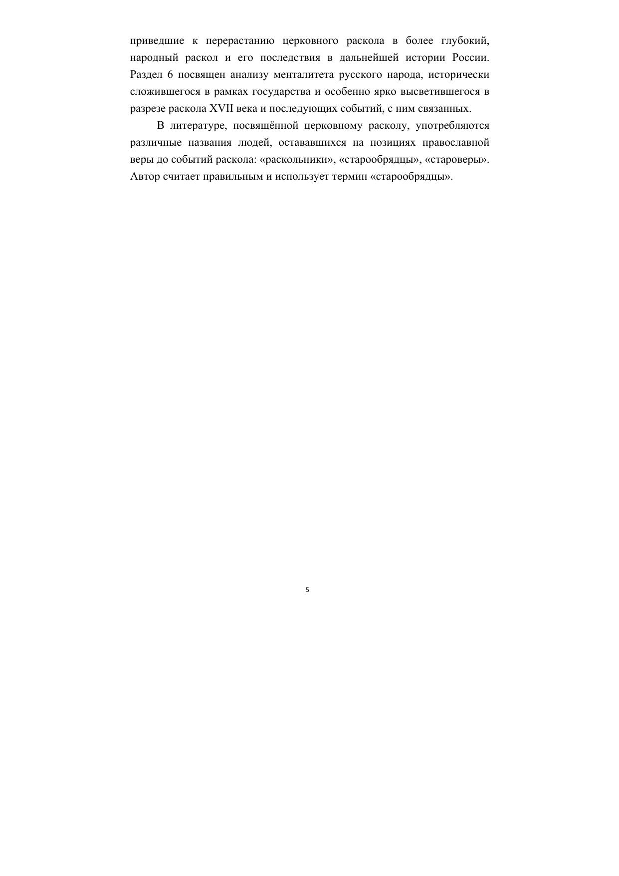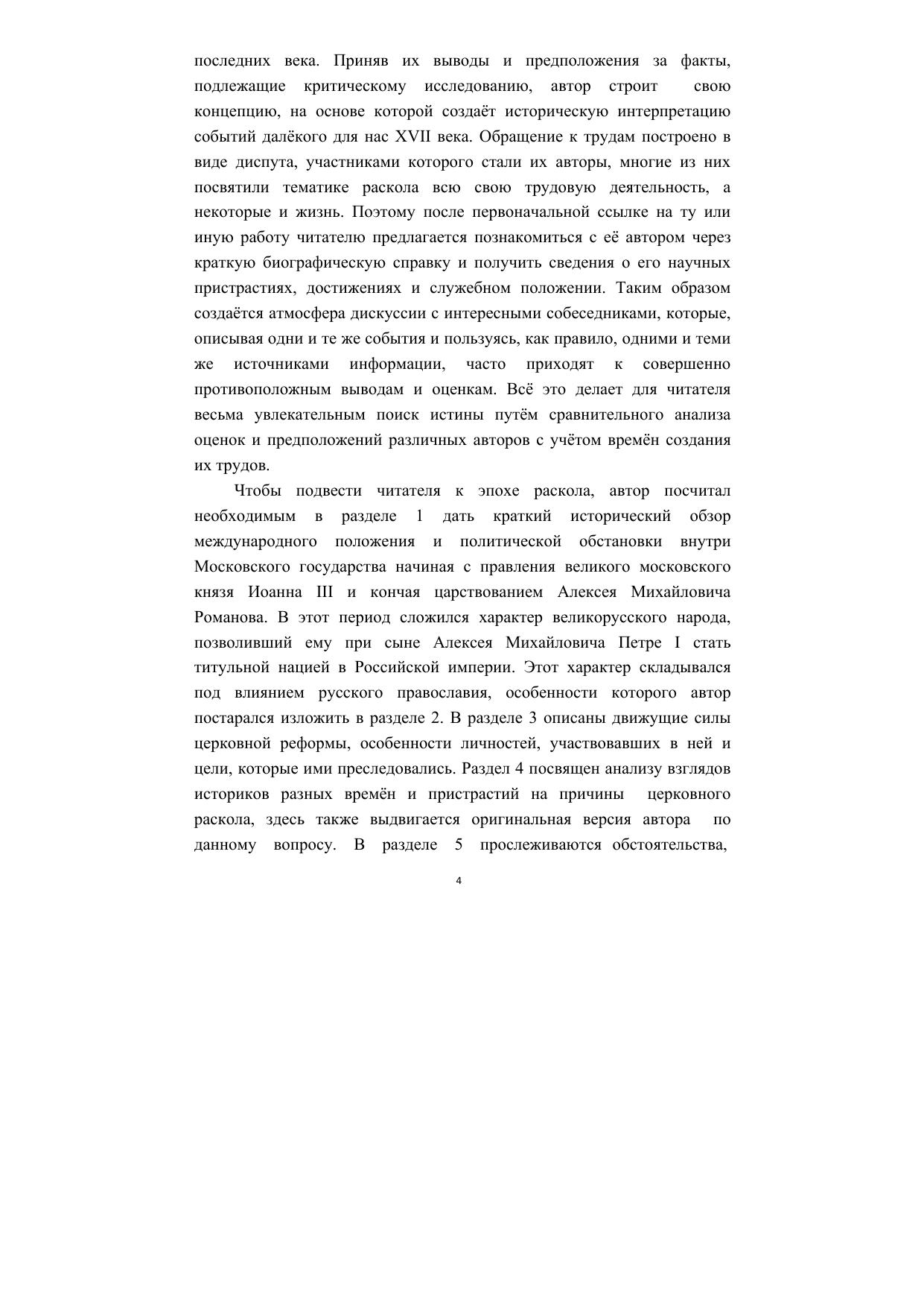 В книге проводится поиск причин трагических событий, произошедших в Московском государстве середины XVII века и приведших к расколу Русской Православной Церкви и русского народа в целом. В этом поиске автор пользовался трудами историков Русской Православной Церкви, древлеправославной (старообрядческой) церкви и светских историков религий за три последних века. Авторы трудов представлены краткими биографическими справками с описанием их научных достижений и пристрастий. Обращение к трудам построено в дискуссионной форме, что создаёт атмосферу общения с интересными собеседниками, которые, описывая одни и те же события, часто приходят к совершенно противоположным выводам и оценкам. Читателю предлагается весьма увлекательный поиск истины путём сравнительного анализа различных версий с учётом научных пристрастий авторов и времён создания их трудов.