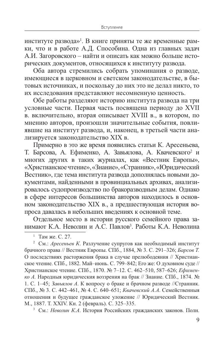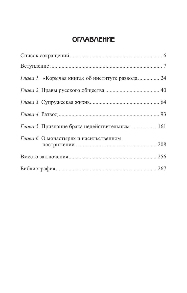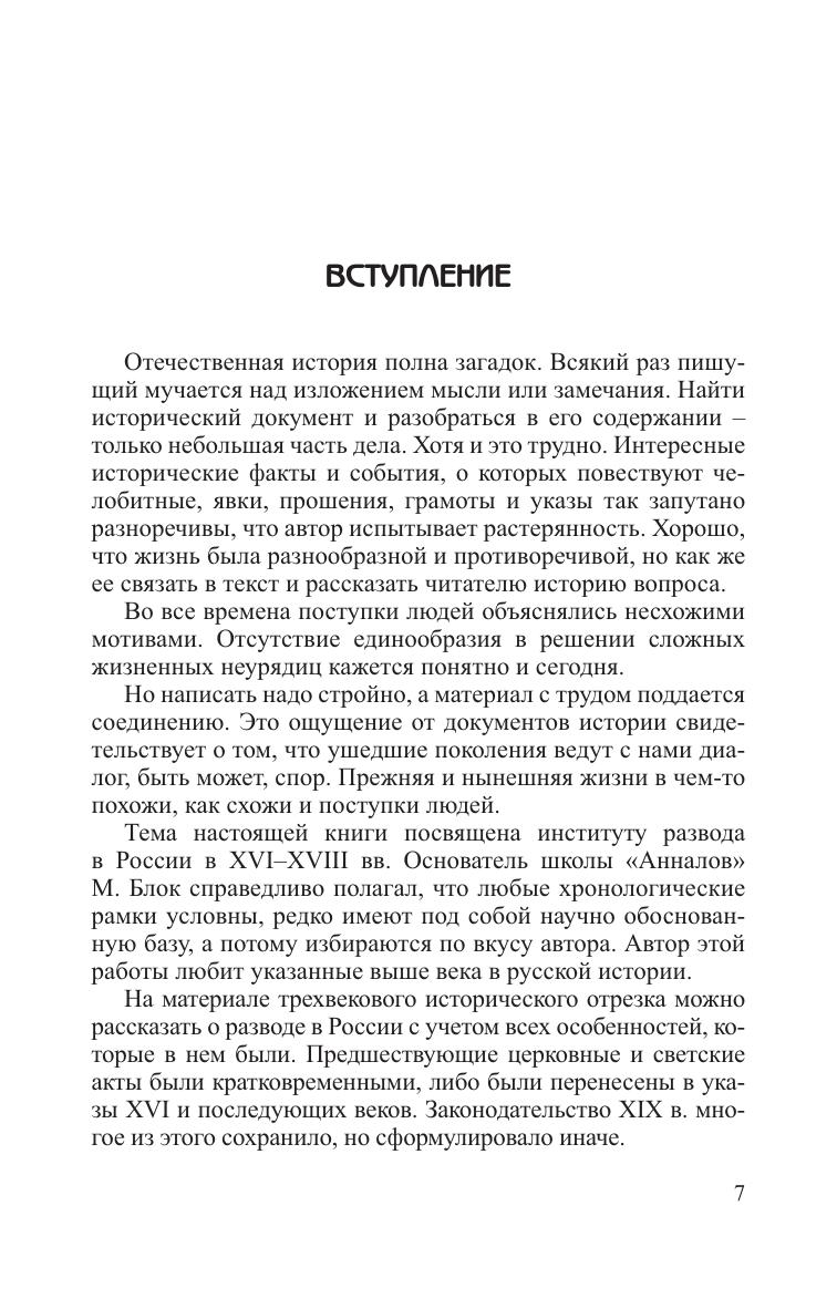 Книга посвящена институту развода в русском семейном праве XVI–XVIII веков. Осуществлена попытка свести воедино законодательные акты церковной и светской власти, судебную практику по бракоразводным делам и делам о прекращении брака. История развода показана на фоне нравственно-религиозной жизни общества и отношений между супругами. Автор пересматривает традиционные представления о закрепощенном положении русской женщины в средневековом обществе и о принуждении к пострижению в монашество как самом распространенном способе прекращения брачных уз. Проблема двоебрачия и безвестного отсутствия одного из супругов рассмотрена в противовес сложившемуся в отечественной историографии убеждению о свободе расторжения брака. Каждое дело, о котором идет речь в книге, является одновременно рассказом о судьбах конкретных людей и представляет самостоятельную ценность. Для ученых и специалистов в области истории и права, преподавателей, студентов и всех интересующихся историей. Может использоваться в качестве учебного пособия для студентов вузов, обучающихся по направлениям и специальностям «История», «Юриспруденция».
