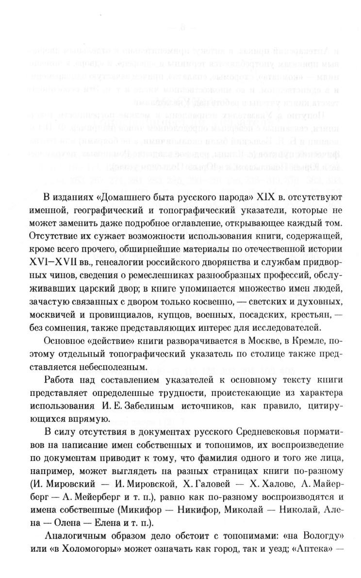 Издание включает в себя топографический, географический и именной указатели к основному тексту книги И. Е. Забелина "Домашний быт русских царей и цариц в XVI- XVII столетиях", отсутствовавшие в авторском тексте. Для историков, студентов-гуманитариев, всех, кто интересуется прошлым нашего Отечества.