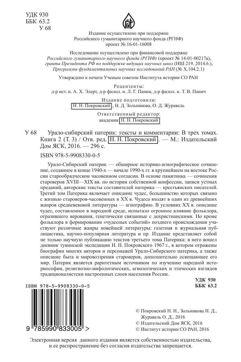 Урало-Сибирский патерик: тексты и комментарии. В трёх томах. Т. 3. Книга 2