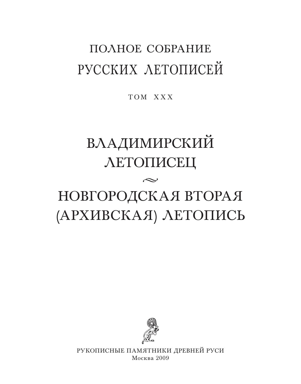 Владимирский летописец. Новгородская вторая (архивская) летопись (Полное собрание русских летописей. Т. XXX)