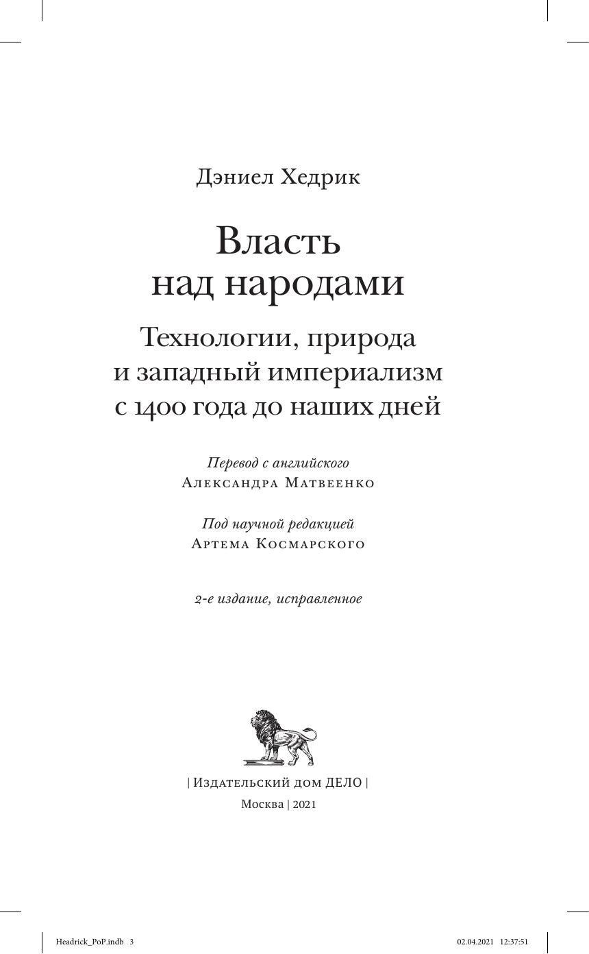 «Власть над народами» — это масштабная, увлекательная и познавательная история технологического прогресса, его надежд и пределов и ключевой роли, которую он сыграл в становлении и падении империй.