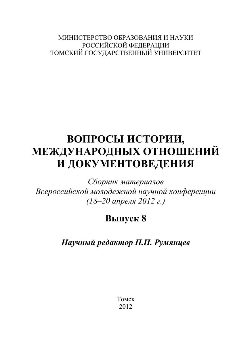 Вопросы истории, международных отношений и документоведения. Выпуск 8