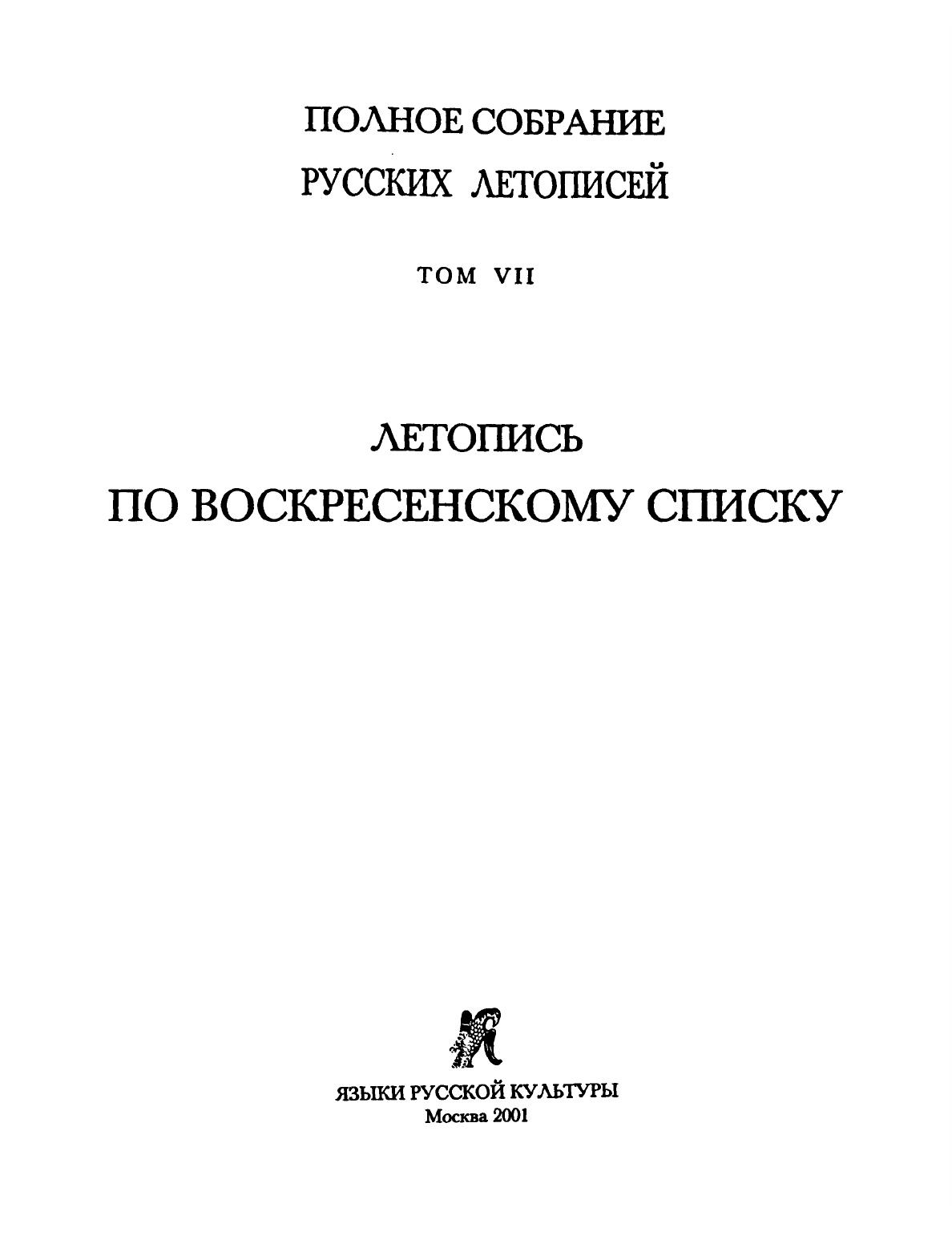 Воскресенская летопись (Полное собрание русских летописей. Т. VII)