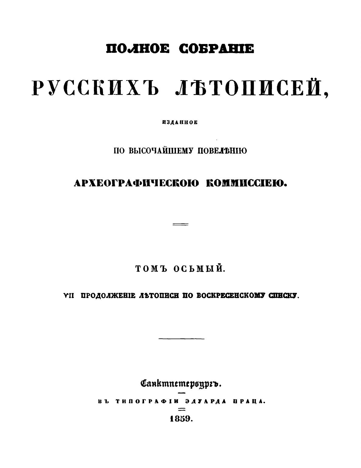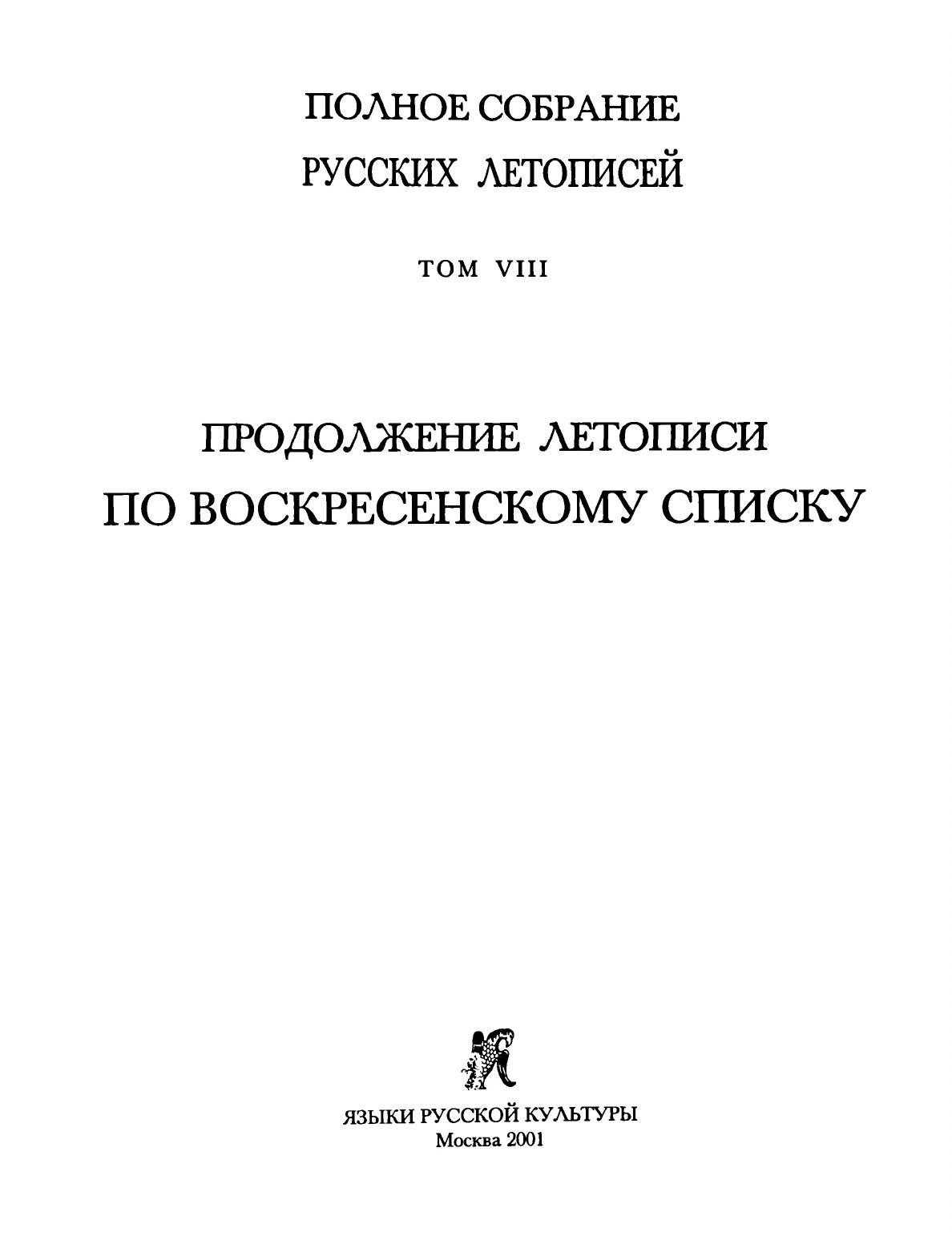 Воскресенская летопись (Полное собрание русских летописей. Т. VIII)