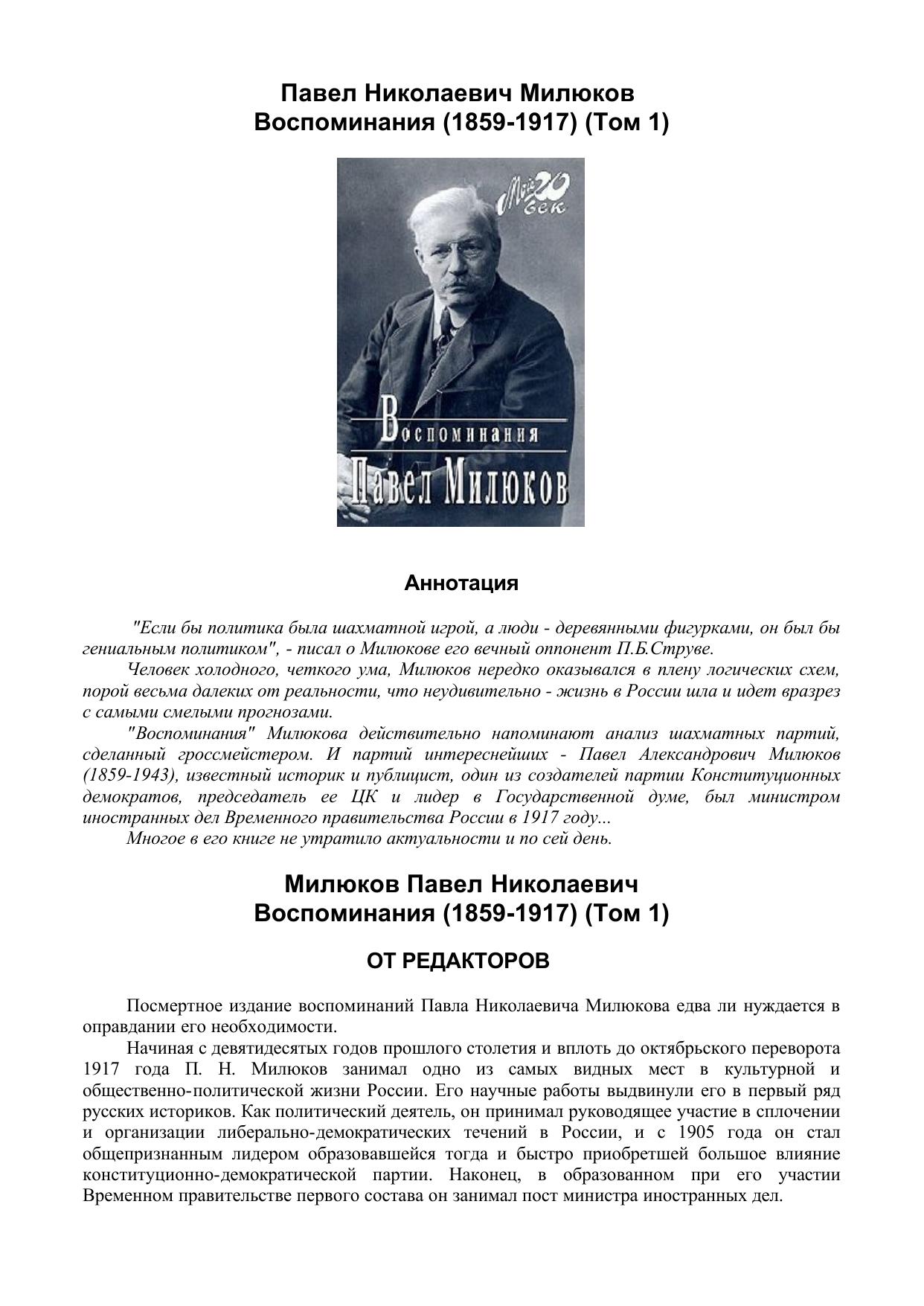 Воспоминания (1859—1917). В 2 т. Нью-Йорк, 1955 (переиздание — М., 1990, 2002). Том I