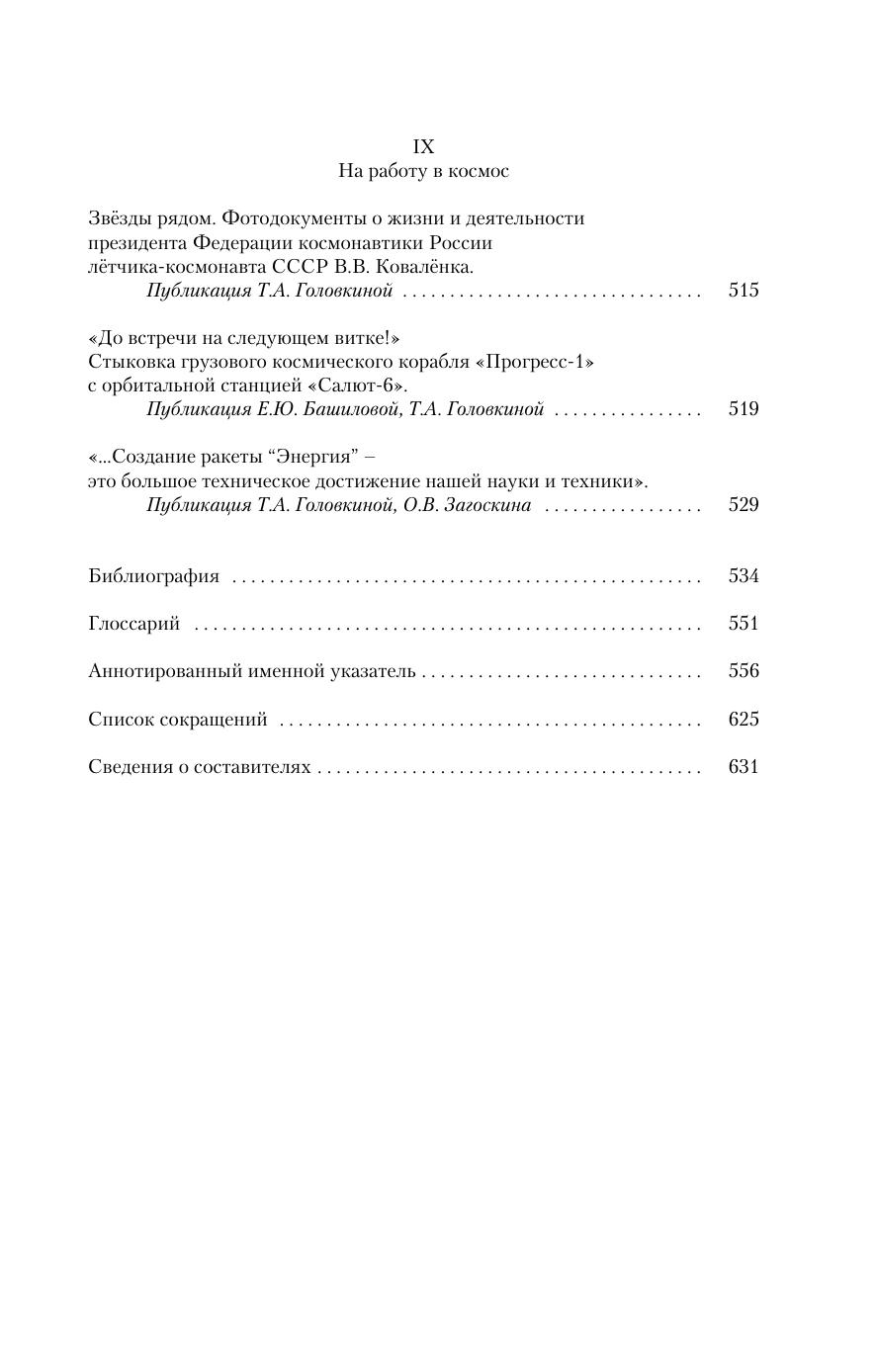 Книга представляет собой попытку рассказать языком документов о фактической, «непричесанной», истории отечественной космонавтики. Читатели узнают о ее первых шагах, создании ракет, строительстве космодромов, запуске первого в мире искусственного спутника Земли, полетах спутников с биологическими объектами на борту, выходе на околоземную орбиту корабля-спутника «Восток» с первым в мире космонавтом Ю. А. Гагариным, первом в истории космонавтики выходе человека в открытый космос, трагедиях на Земле и в космосе, международных полетах, создании универсальной ракетно-космической транспортной системы «Энергия»–«Буран».