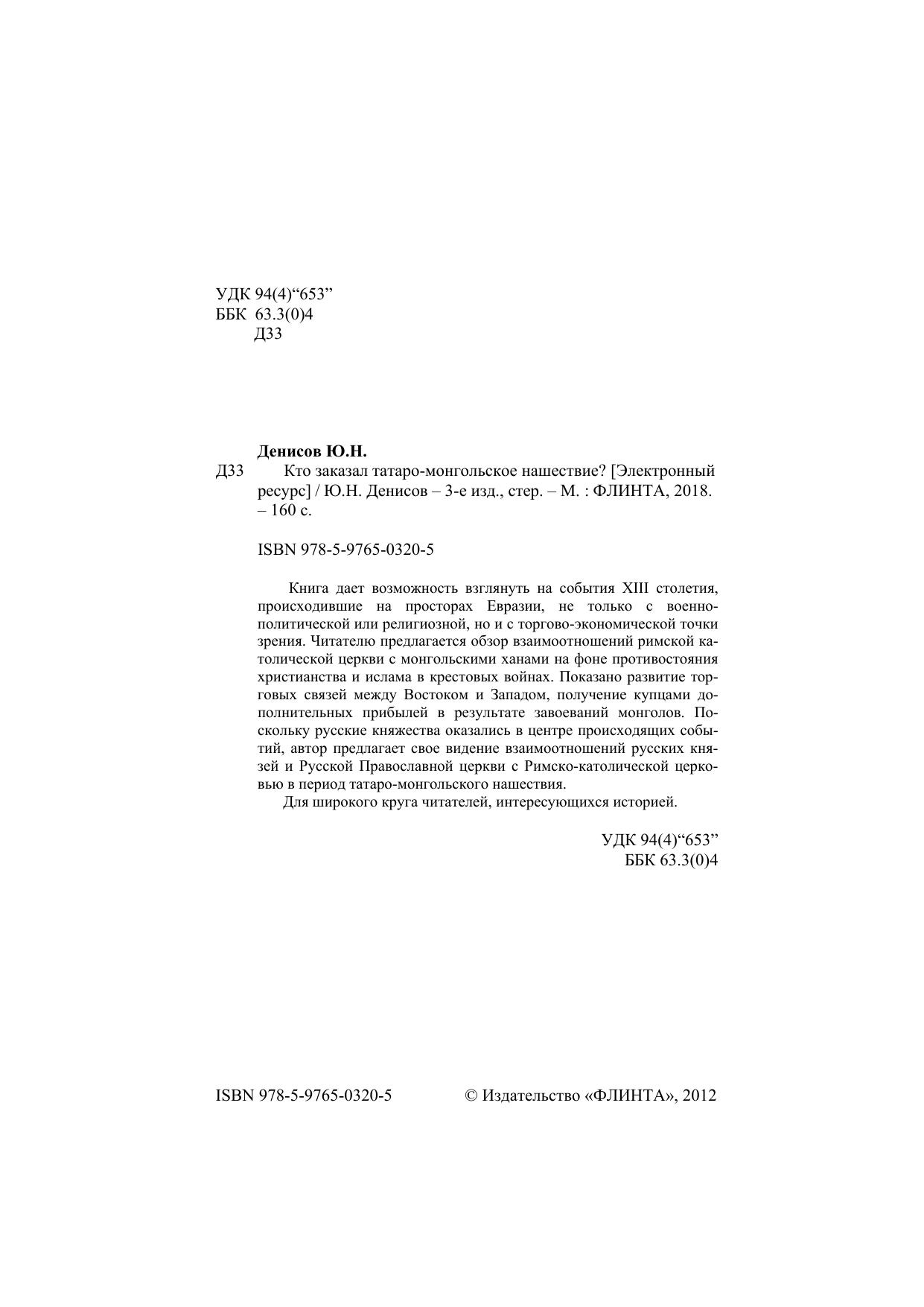 Книга дает возможность взглянуть на события XIII столетия, происходившие на просторах Евразии, не только с военно- политической или религиозной, но и с торгово-экономической точки зрения. Читателю предлагается обзор взаимоотношений римской католической церкви с монгольскими ханами на фоне противостояния христианства и ислама в крестовых войнах. Показано развитие торговых связей между Востоком и Западом, получение купцами до- полнительных прибылей в результате завоеваний монголов. Поскольку русские княжества оказались в центре происходящих событий, автор предлагает свое видение взаимоотношений русских князей и Русской Православной церкви с Римско-католической церковью в период татаро-монгольского нашествия.
