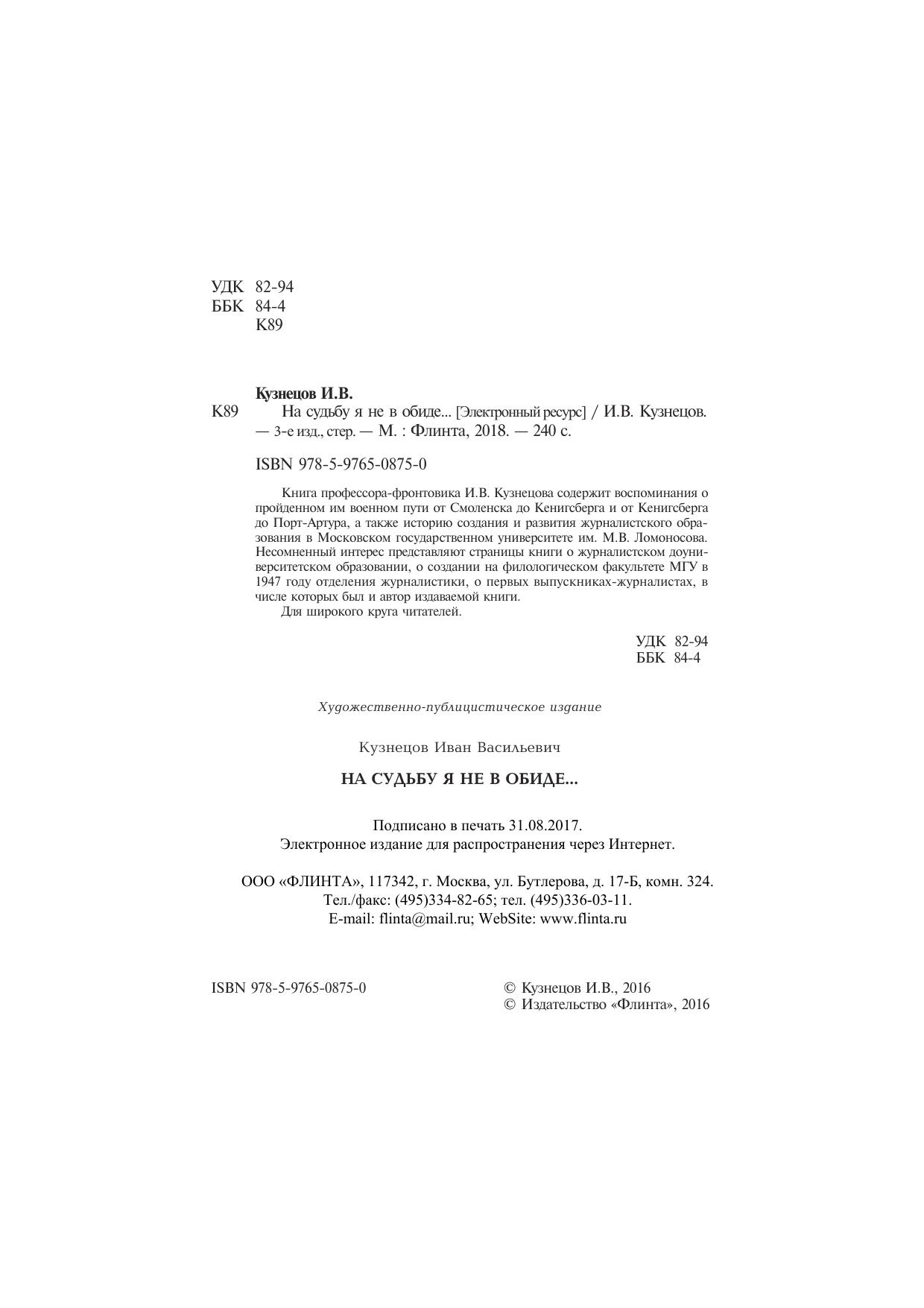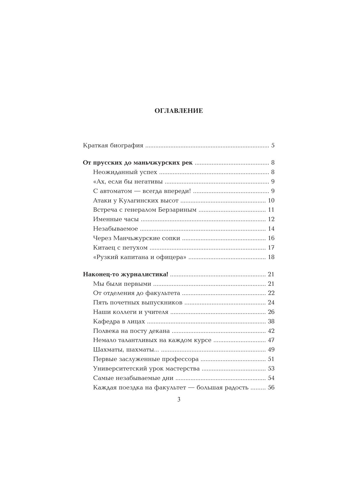 Книга профессора-фронтовика И.В. Кузнецова содержит воспоминания о пройденном им военном пути от Смоленска до Кенигсберга и от Кенигсберга до Порт-Артура, а также историю создания и развития журналистского образования в Московском государственном университете им. М.В. Ломоносова. Несомненный интерес представляют страницы книги о журналистском доуниверситетском образовании, о создании на филологическом факультете МГУ в 1947 году отделения журналистики, о первых выпускниках-журналистах, в числе которых был и автор издаваемой книги. Для широкого круга читатетей.