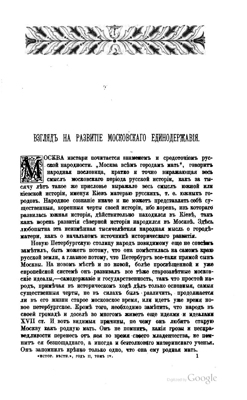 Взгляд на развитие московского единодержавия (Исторический вестник, № 3, 4, 5) Часть 1