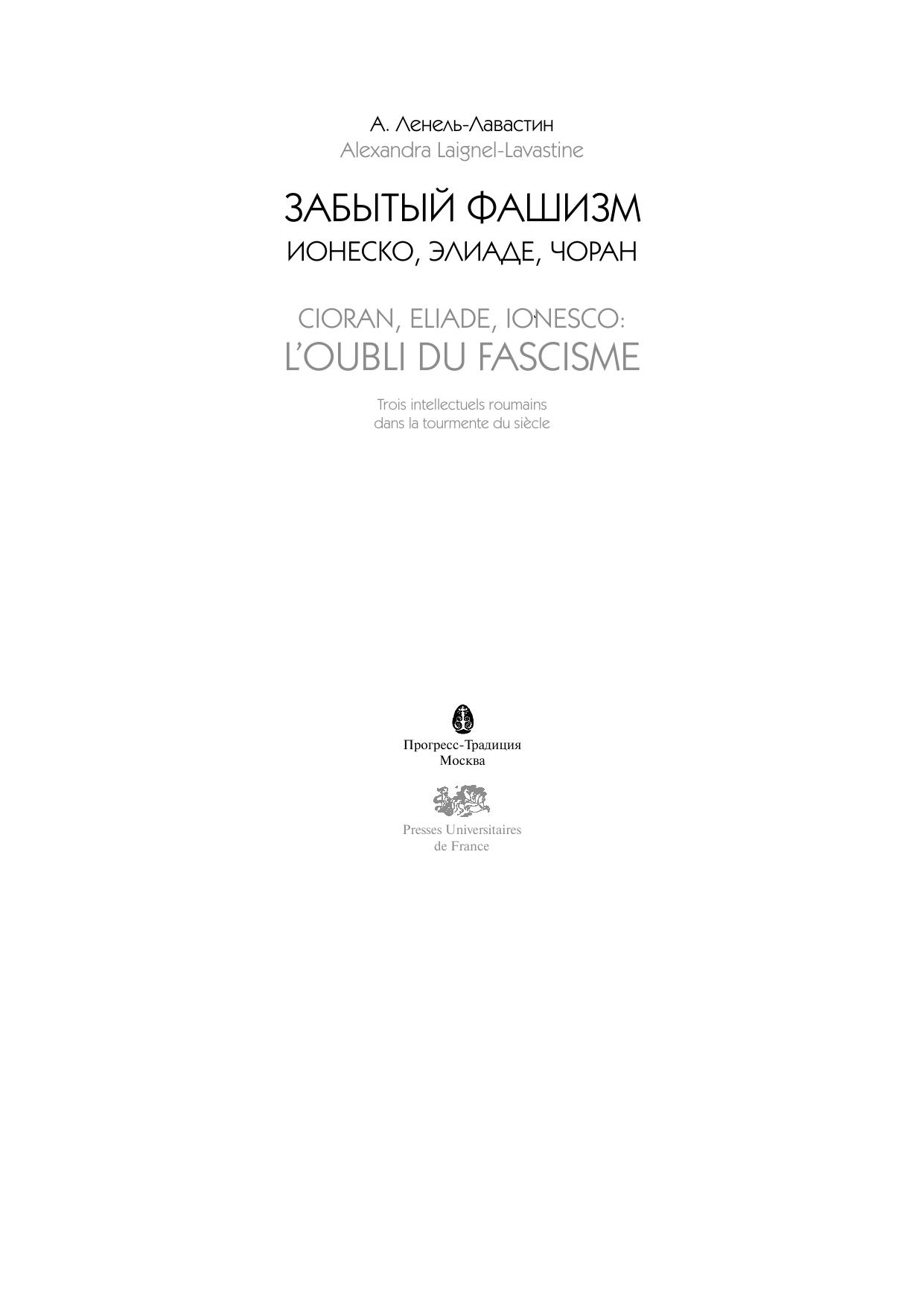 Забытый фашизм: Ионеско, Элиаде, Чоран Ленель Лавастин А.