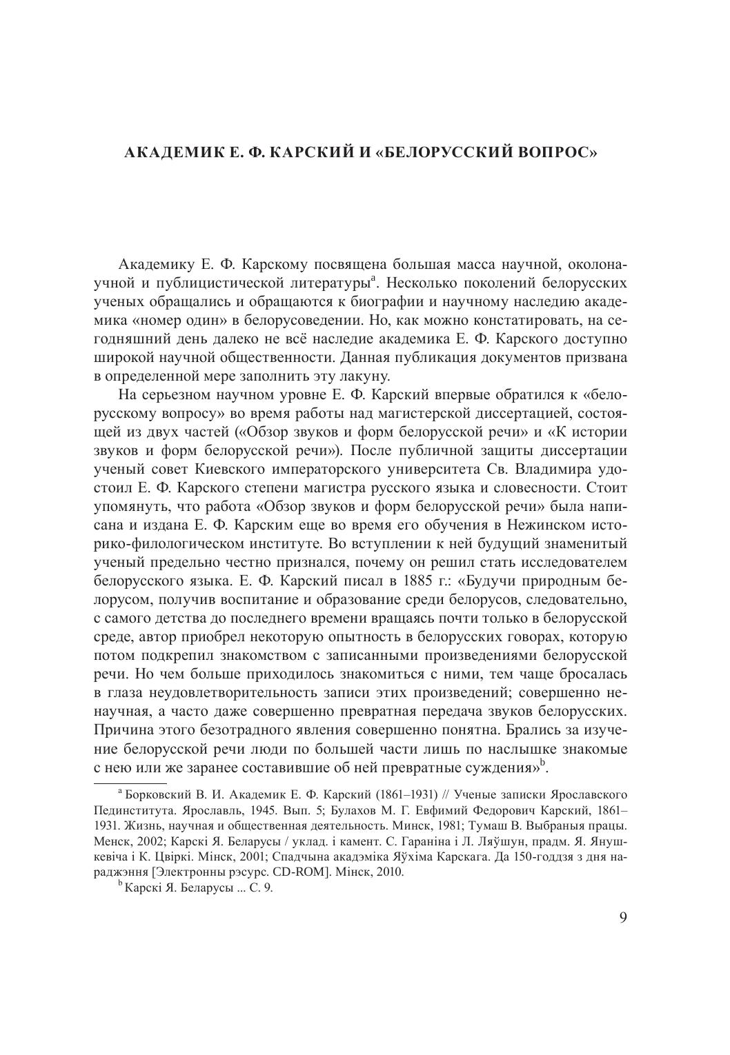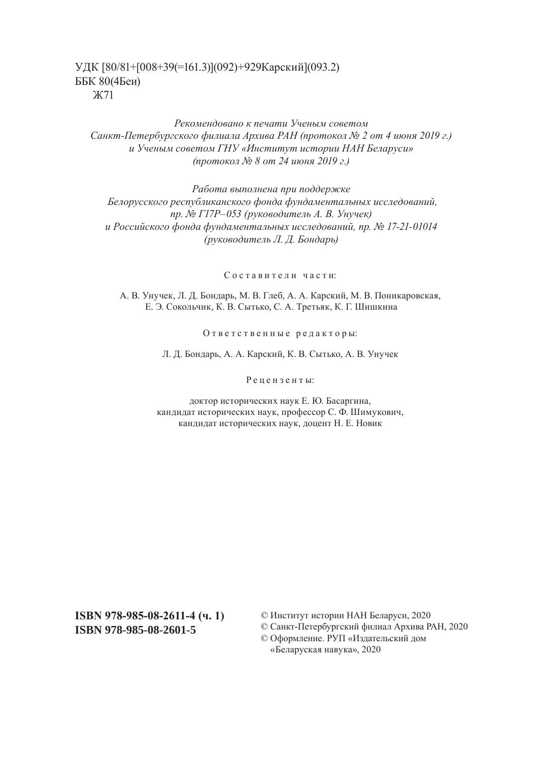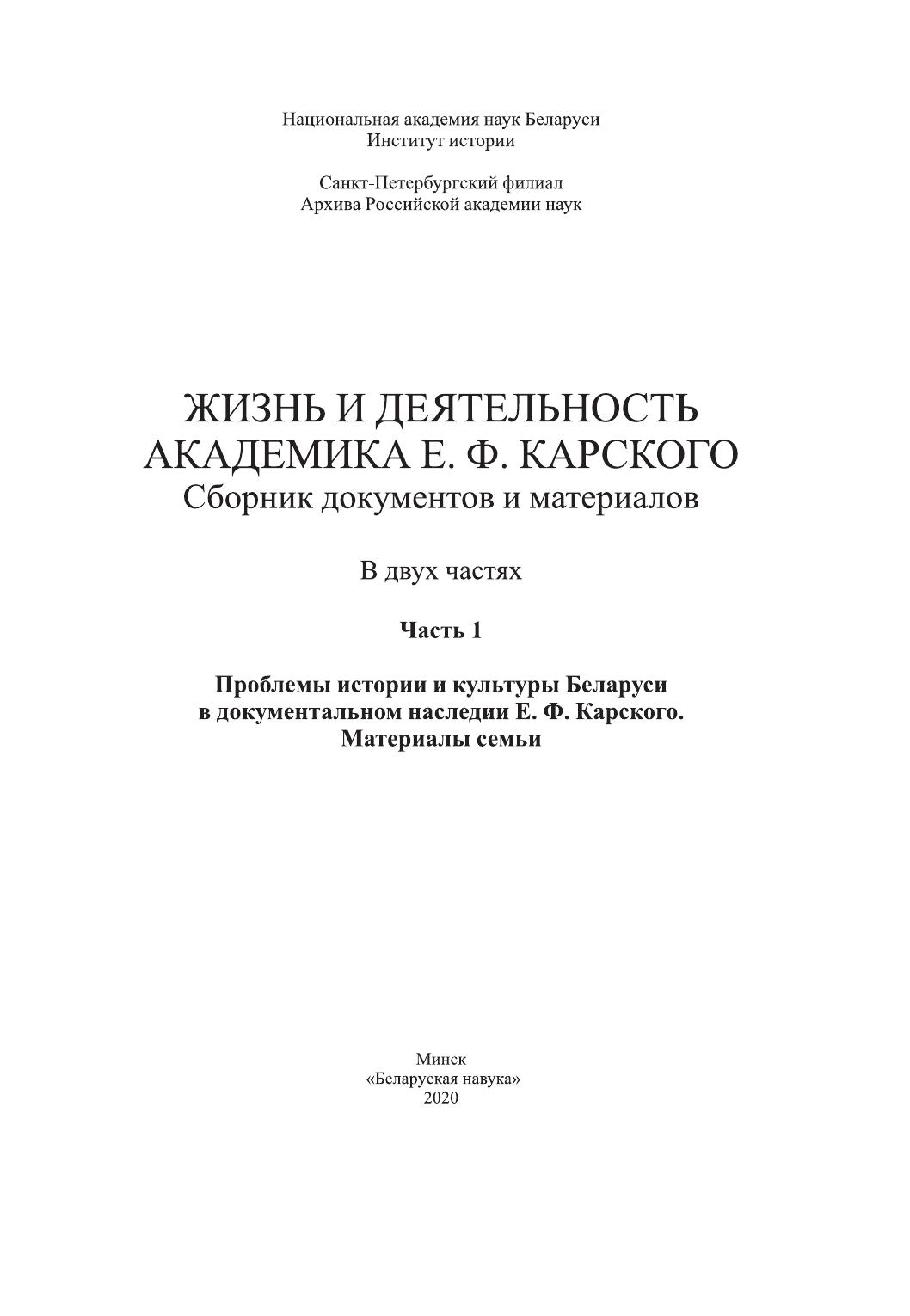 Жизнь и деятельность академика Е. Ф. Карского: В 2 ч. Ч. 1. Проблемы истории и культуры Беларуси в документальном наследии Е. Ф. Карского. Материалы семьи