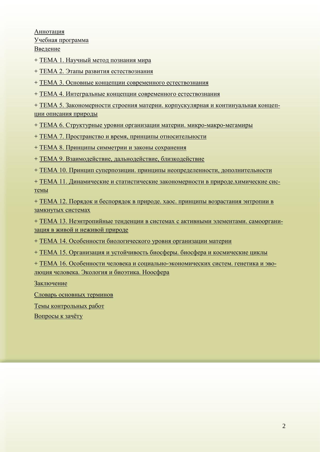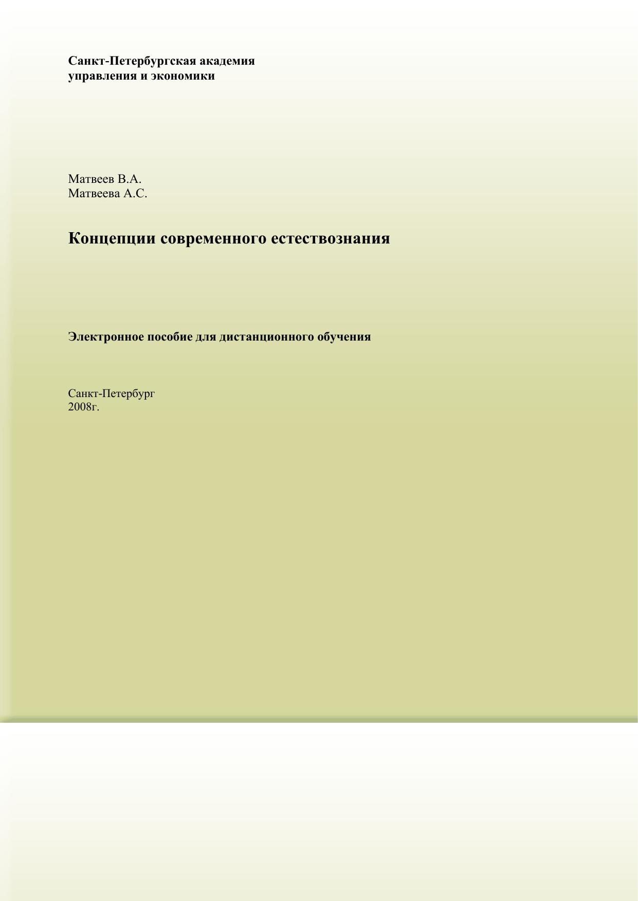 Учебное пособие написано в соответствии с Государственным стандартом РФ по дисциплине "Концепции современного естествознания", входящей в цикл общих математических и естественнонаучных дисциплин. В пособии рассмотрены основные концепции современного естествознания, имеющие значение для формирования научного мировоззрения студентов гуманитарных специальностей. Предназначено для обучения студентов всех специальностей и направлений. Электронное учебное пособие для дистанционного обучения