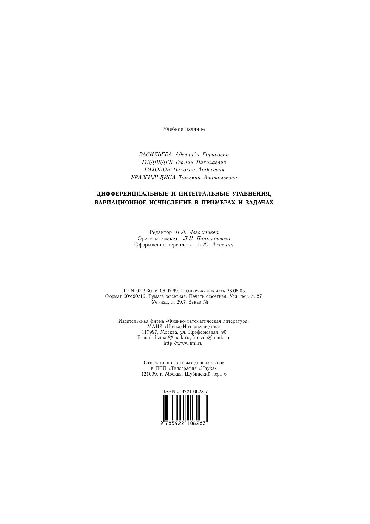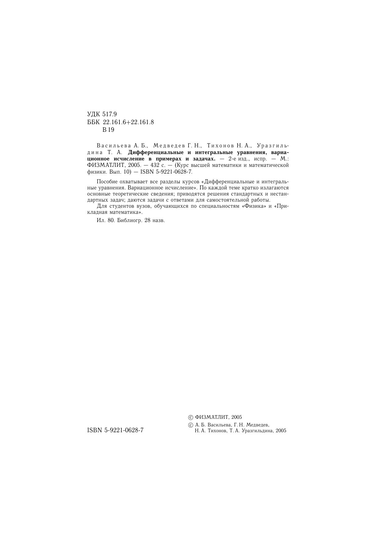 Дифференциальные и интегральные уравнения, вариационное исчисление в примерах и задачах