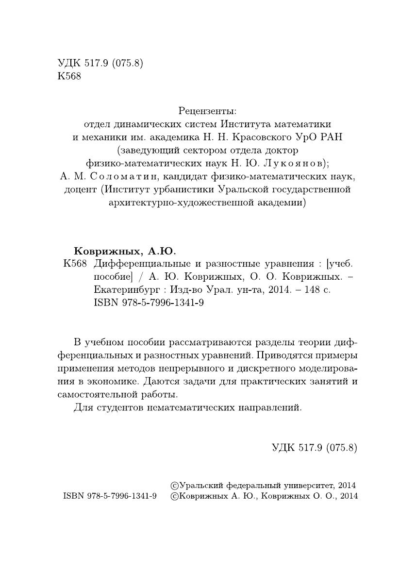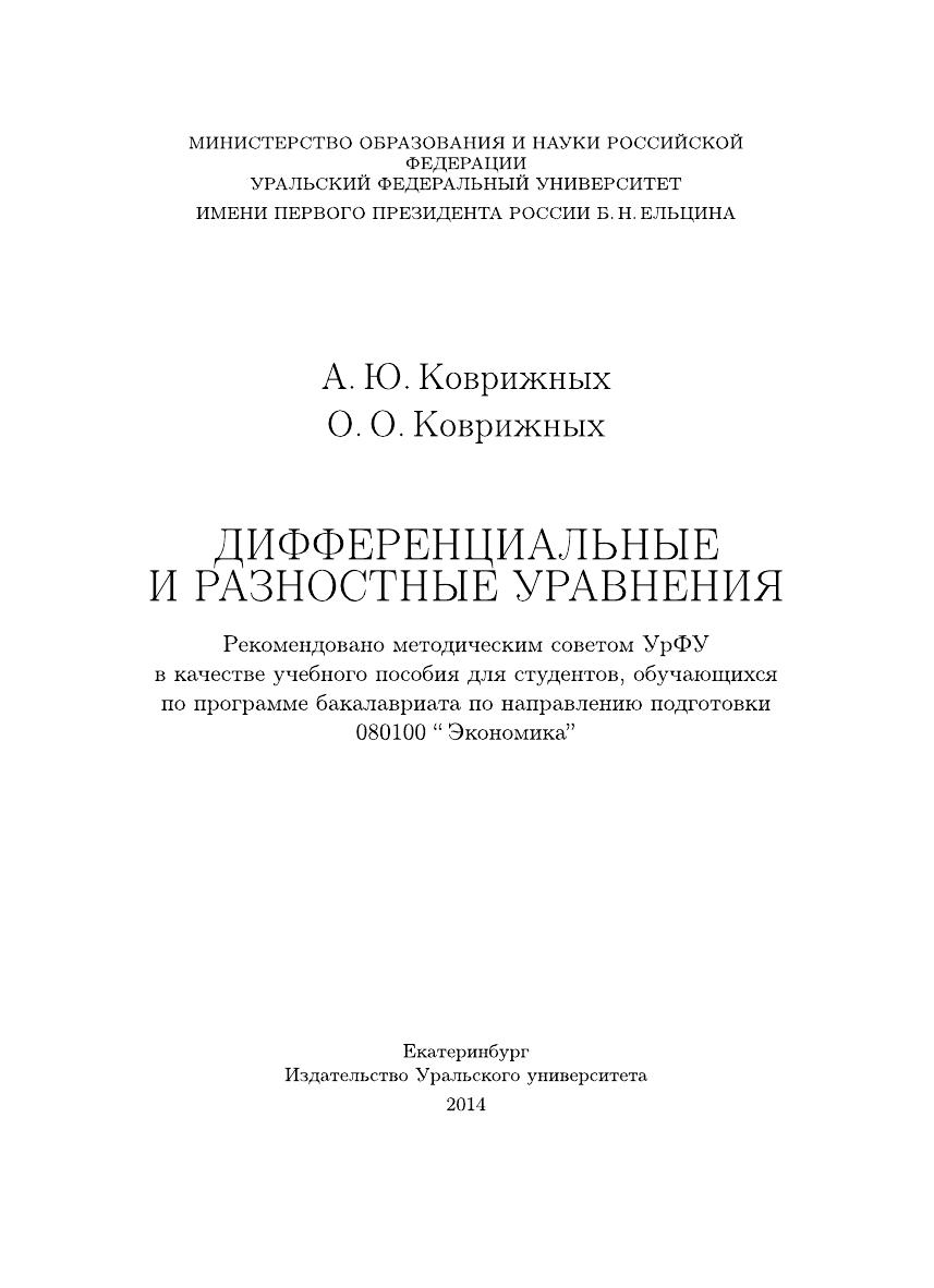 В учебном пособии рассматриваются разделы теории дифференциальных и разностных уравнений. Приводятся примеры применения методов непрерывного и дискретного моделировав ния в экономике. Даются задачи для практических занятий и самостоятельной работы. Для студентов нематематических направлений.