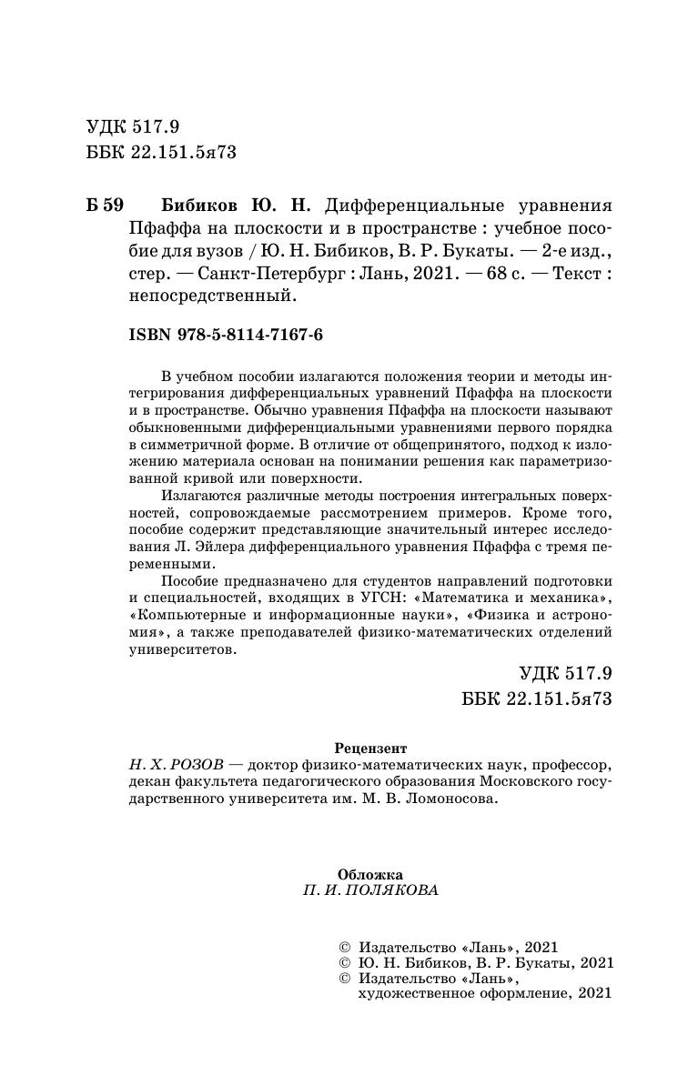 Излагаются различные методы построения интегральных поверхностей, сопровождаемые рассмотрением примеров. Кроме того, пособие содержит представляющие значительный интерес исследования Л. Эйлера дифференциального уравнения Пфаффа с тремя переменными.
