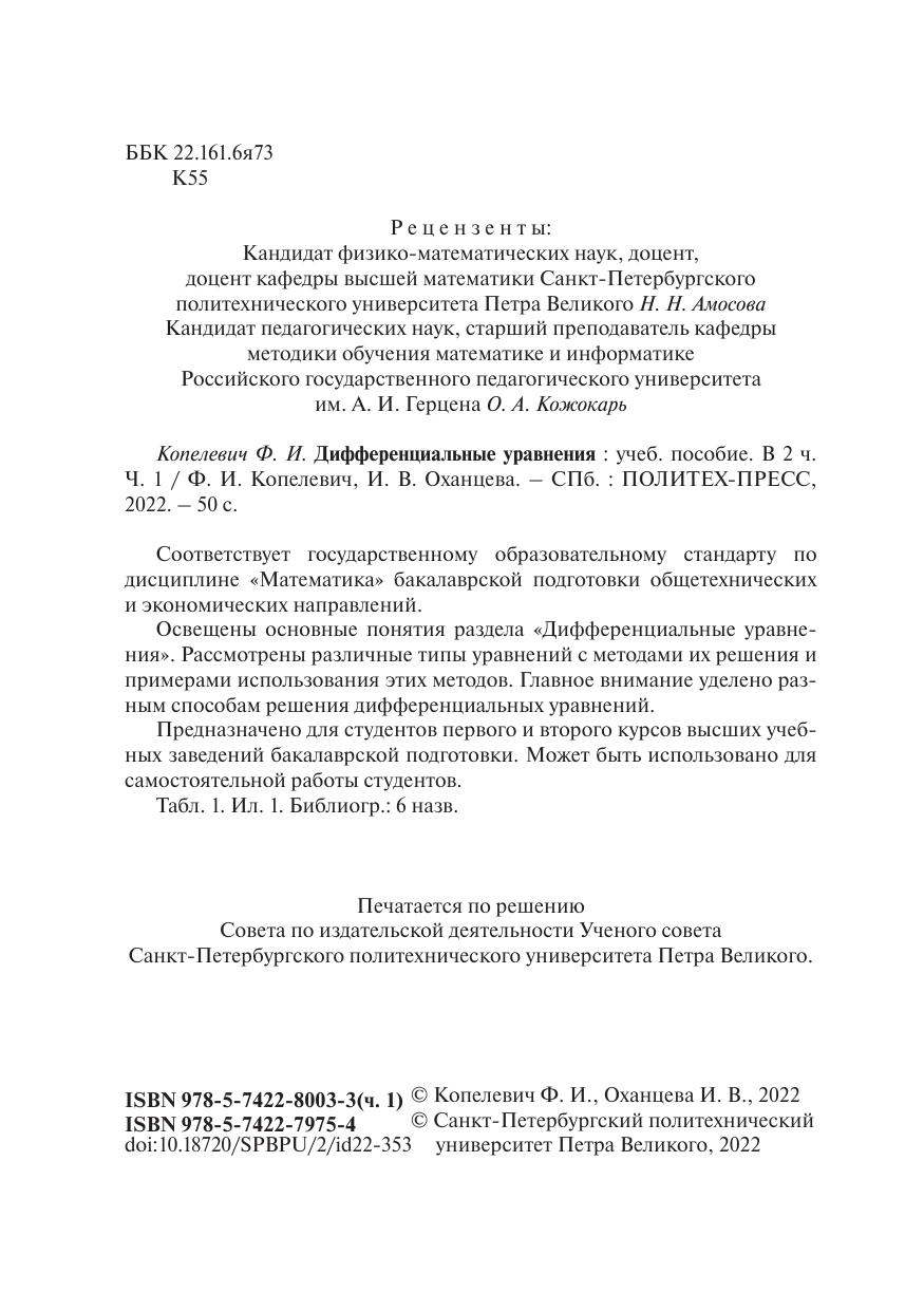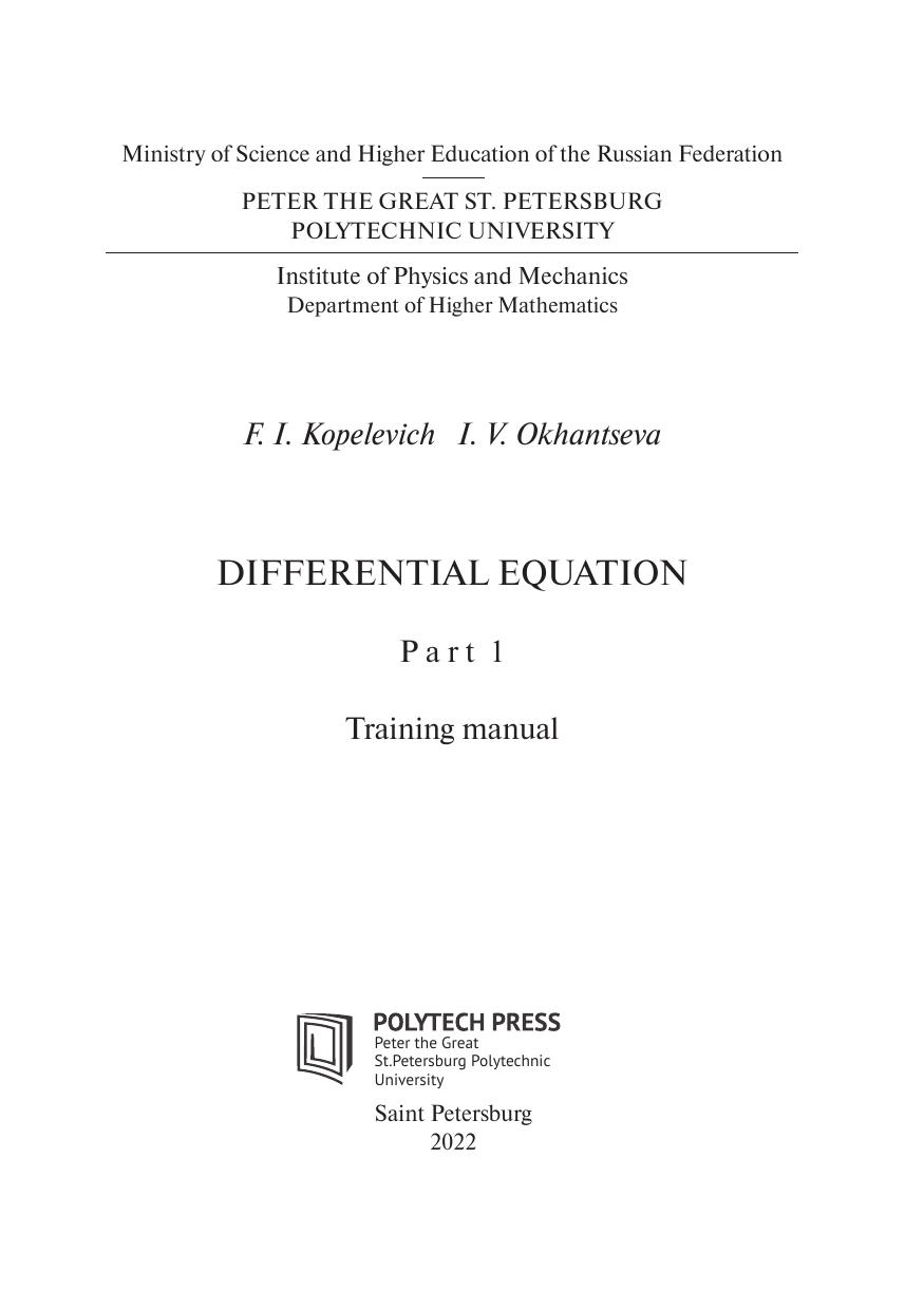 Соответствует государственному образовательному стандарту по дисциплине «Математика» бакалаврской подготовки общетехнических и экономических направлений. Освещены основные понятия раздела «Дифференциальные уравнения». Рассмотрены различные типы уравнений с методами их решения и примерами использования этих методов. Главное внимание уделено разным способам решения дифференциальных уравнений. Предназначено для студентов первого и второго курсов высших учебных заведений бакалаврской подготовки. Может быть использовано для самостоятельной работы студентов.