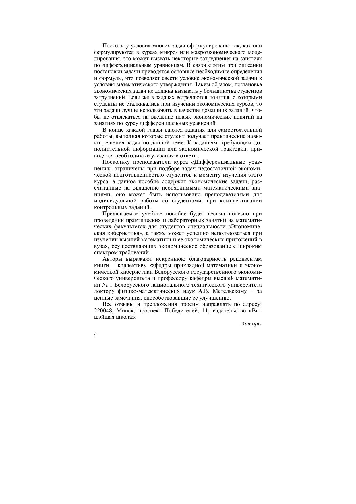 Изложены необходимые основы математического аппарата теории дифференциальных, линейных разностных уравнений и систем и даны примеры его использования в современных экономических приложениях. Представлены решения большого количества типичных задач, дана подборка задач для самостоятельного решения.