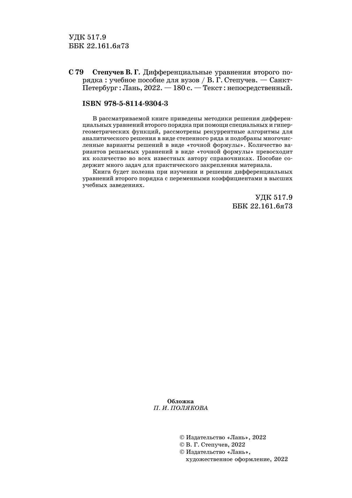 В рассматриваемой книге приведены методики решения дифференциальных уравнений второго порядка при помощи специальных и гипергеометрических функций, рассмотрены рекуррентные алгоритмы для аналитического решения в виде степенного ряда и подобраны многочисленные варианты решений в виде «точной формулы». Количество вариантов решаемых уравнений в виде «точной формулы» превосходит их количество во всех известных автору справочниках. Пособие содержит много задач для практического закрепления материала. Книга будет полезна при изучении и решении дифференциальных уравнений второго порядка с переменными коэффициентами в высших учебных заведениях.