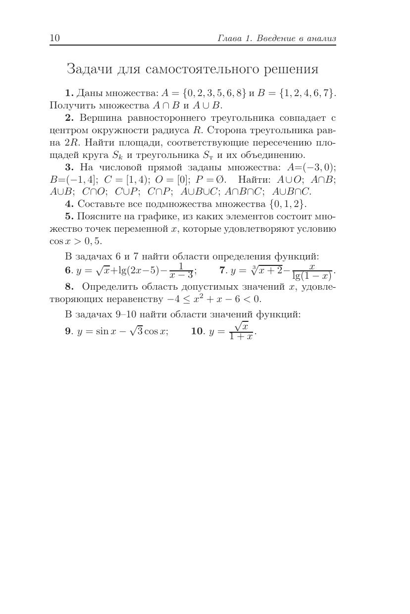 Содержание соответствует программам математической подготовки бакалавров и специалистов по направлениям «Инженерное дело, технологии и технические науки» и «Науки об обществе». Приводятся примеры приложения математики к решению конкретных технических и экономических задач. Разобраны решения типовых задач. Даны условия задач для самостоятельного решения и задания для выполнения расчетных работ. Приведены вопросы для самопроверки усвоения материала и типовые контрольные работы.