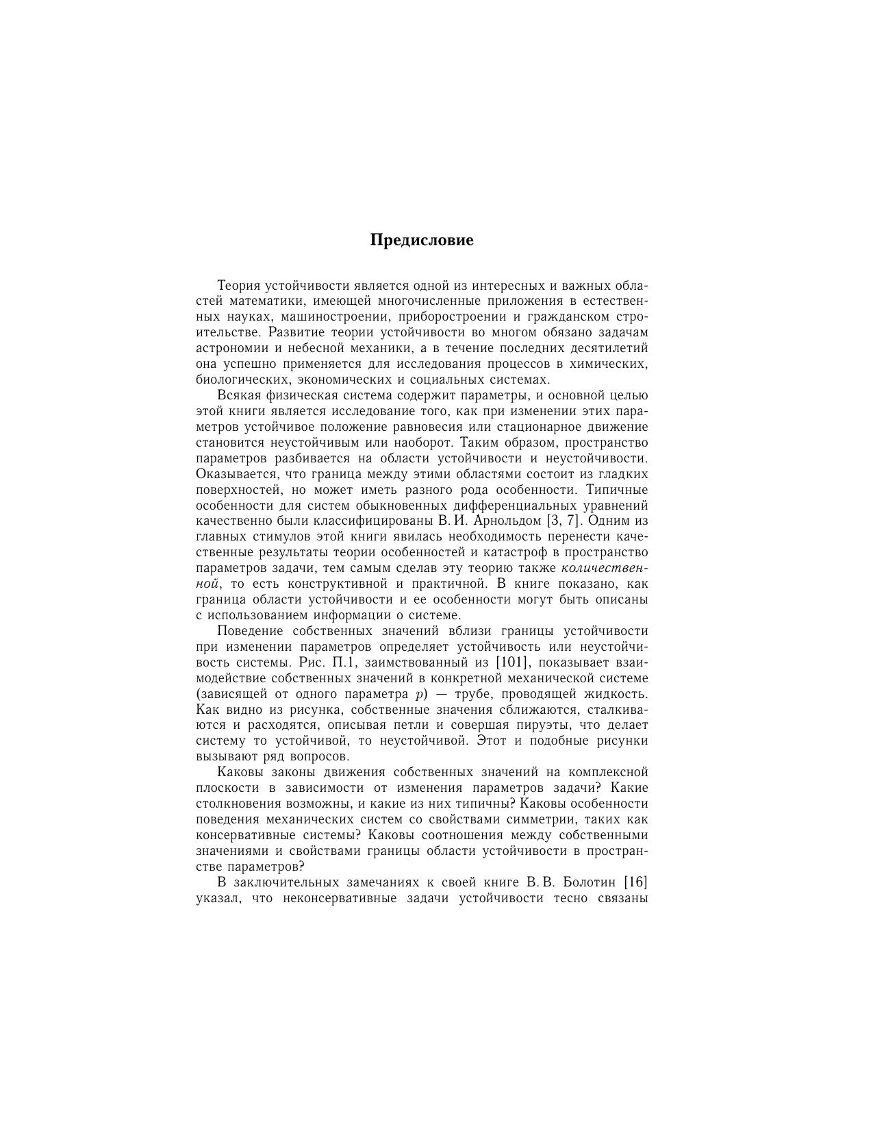 В книге излагаются фундаментальные основы и методы много-параметрической теории устойчивости с приложениями к задачам механики. В ней отражены современные знания и достижения теории бифуркаций собственных значений, анализа чувствительности характеристик устойчивости, теории устойчивости неконсервативных систем, анализа особенностей границ областей устойчивости, изучены вопросы устойчивости периодических систем и задачи максимизации критической силы потери устойчивости упругих систем при ограничении на полную массу. Книга адресована научным работникам и инженерам, преподавателям университетов, аспирантам и студентам старших курсов, интересующимся теорией устойчивости и ее приложениями.