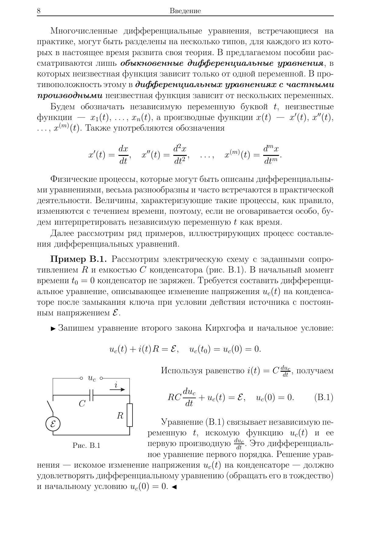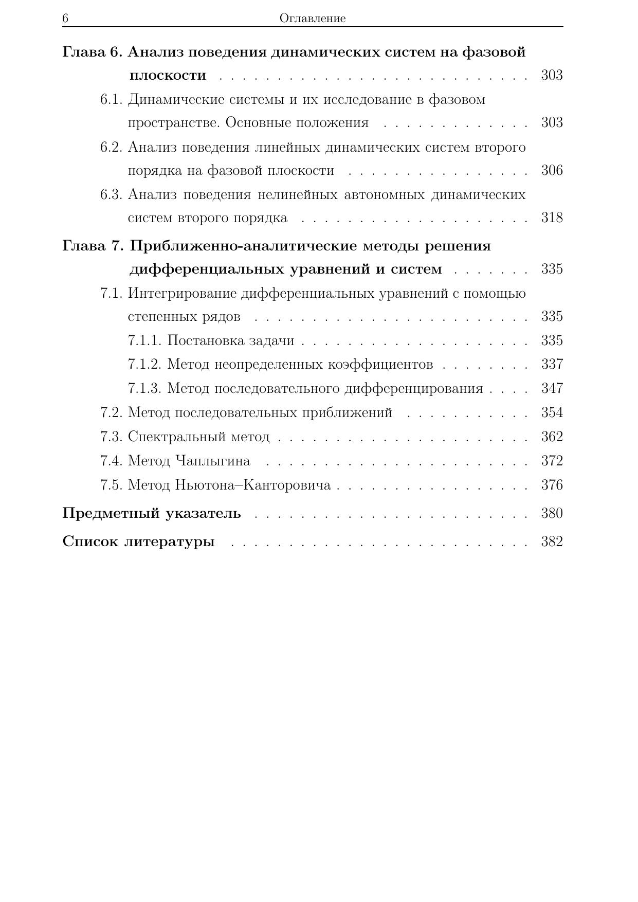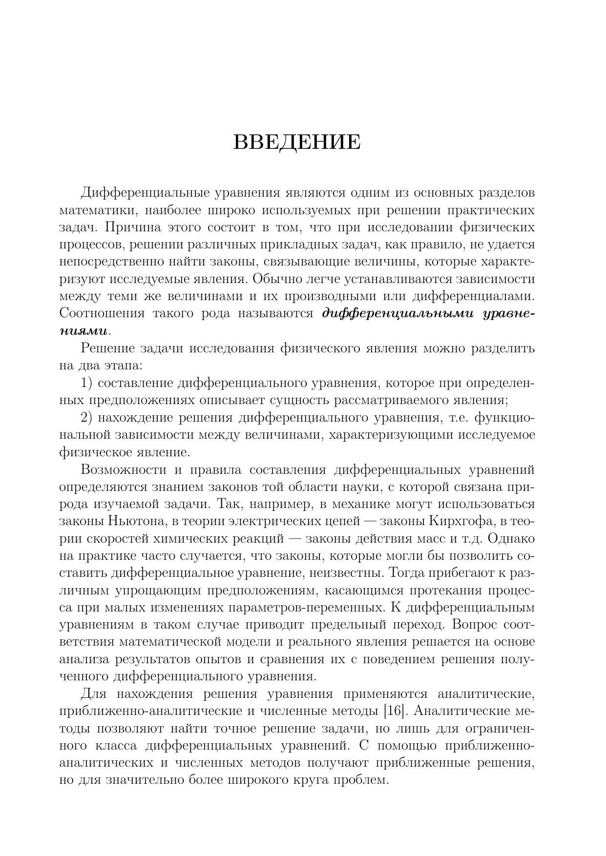 Изложены аналитические и приближенно-аналитические методы и алгоритмы решения обыкновенных дифференциальных уравнений. Применение каждого метода продемонстрировано на решении типовых и нетиповых примеров, охватывающих различные приложения к задачам механики, экономики, расчета электрических цепей и биологических систем. Особое внимание уделено специфике решения задач анализа выходных процессов и устойчивости одно- и многомерных динамических систем, исследуемых в теории управления. Для студентов высших учебных заведений, получающих образование по направлению (специальности) «Прикладная математика», а также по направлениям (специальностям) естественных наук, техники и технологии, информатики и экономики на квалификацию специалиста, степени бакалавра и магистра.