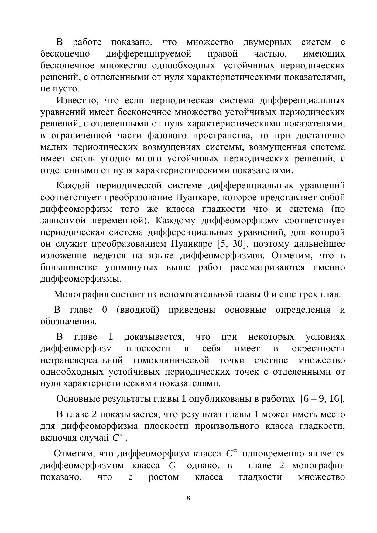 Монография посвящена проблеме существования бесконечного числа устойчивых периодических решений в окрестности гомоклинического решения периодической системы дифференциальных уравнений. Решенная автором работы весьма тонкая и сложная проблема существования в окрестности гомоклинического решения бесконечного числа устойчивых периодических решений с отделенными от нуля характеристическими показателями имеет очень большое значение при качественном исследовании систем. Особенно важно, что при бифуркациях систем из выделенного автором класса устойчивые периодические решения не исчезают, а их характеристические показатели также оказываются меньше некоторого отрицательного числа. Книга написана на актуальную тему, строгим и современным математическим языком. Изложение ясное, что в дальнейшем позволит использовать монографию при чтении специальных курсов по дифференциальным уравнениям. Монография предназначена для научных работников физико-математических и технических специальностей научно-исследовательских организаций и высших учебных заведений и может быть полезна студентам, аспирантам и специалистам, занимающимся исследованиями нелинейных динамических систем.