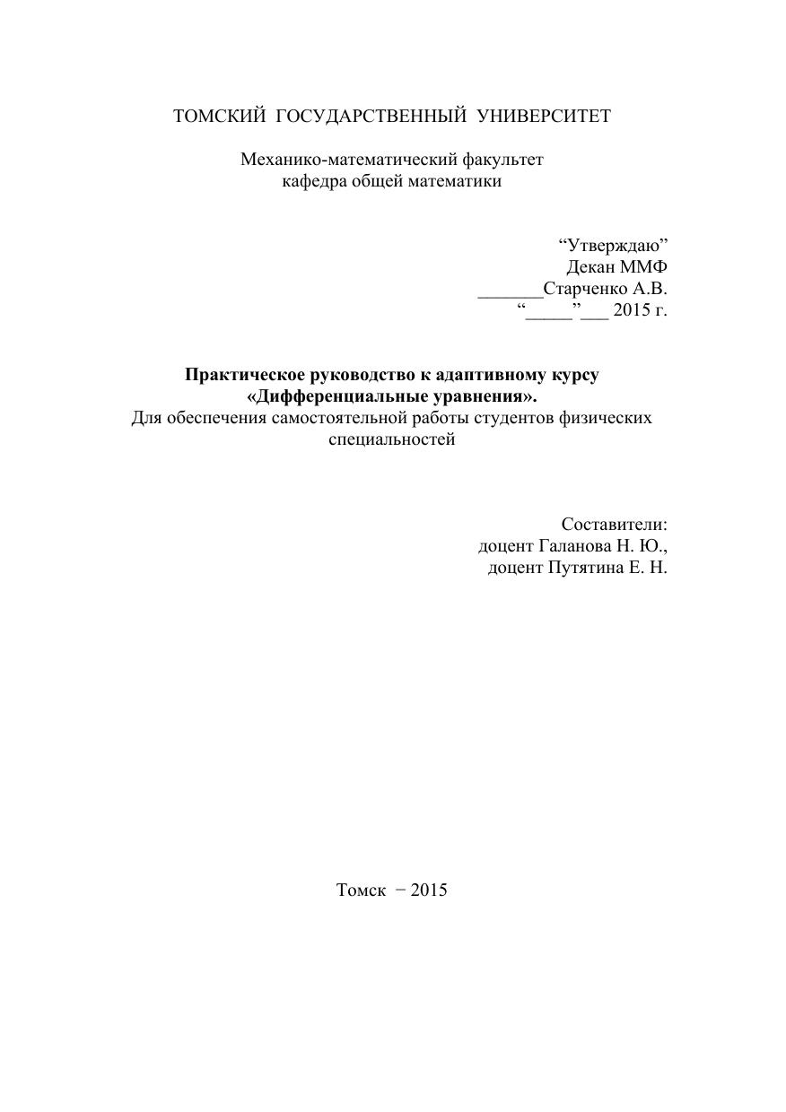 Практическое руководство к адаптивному курсу «Дифференциальные уравнения».