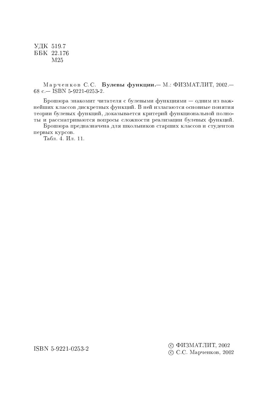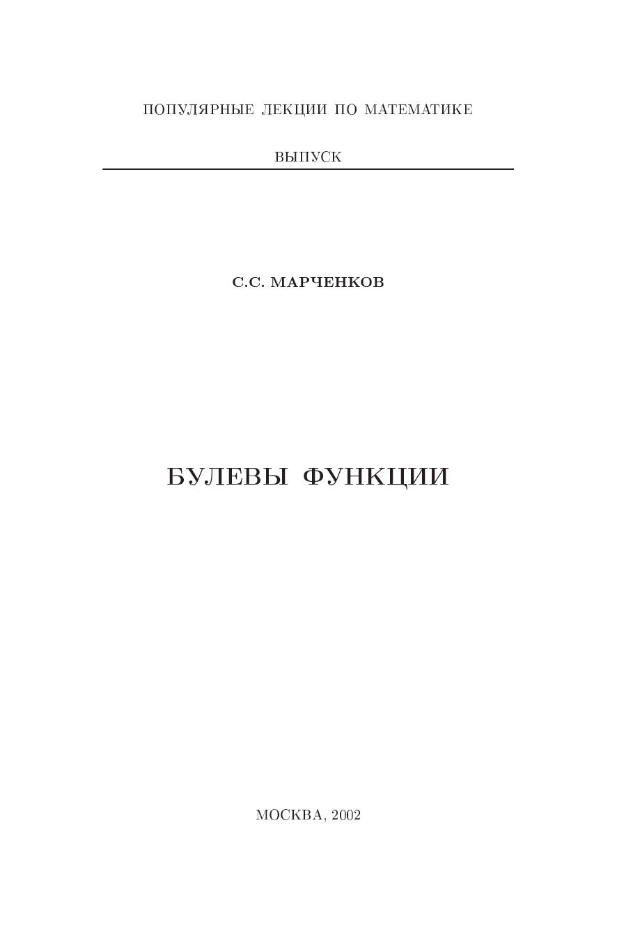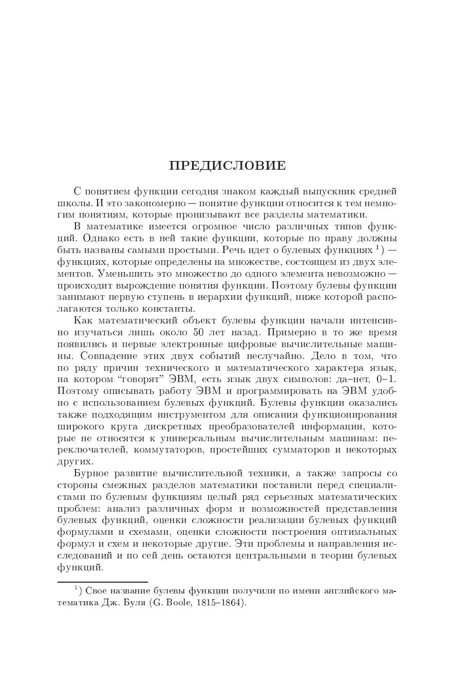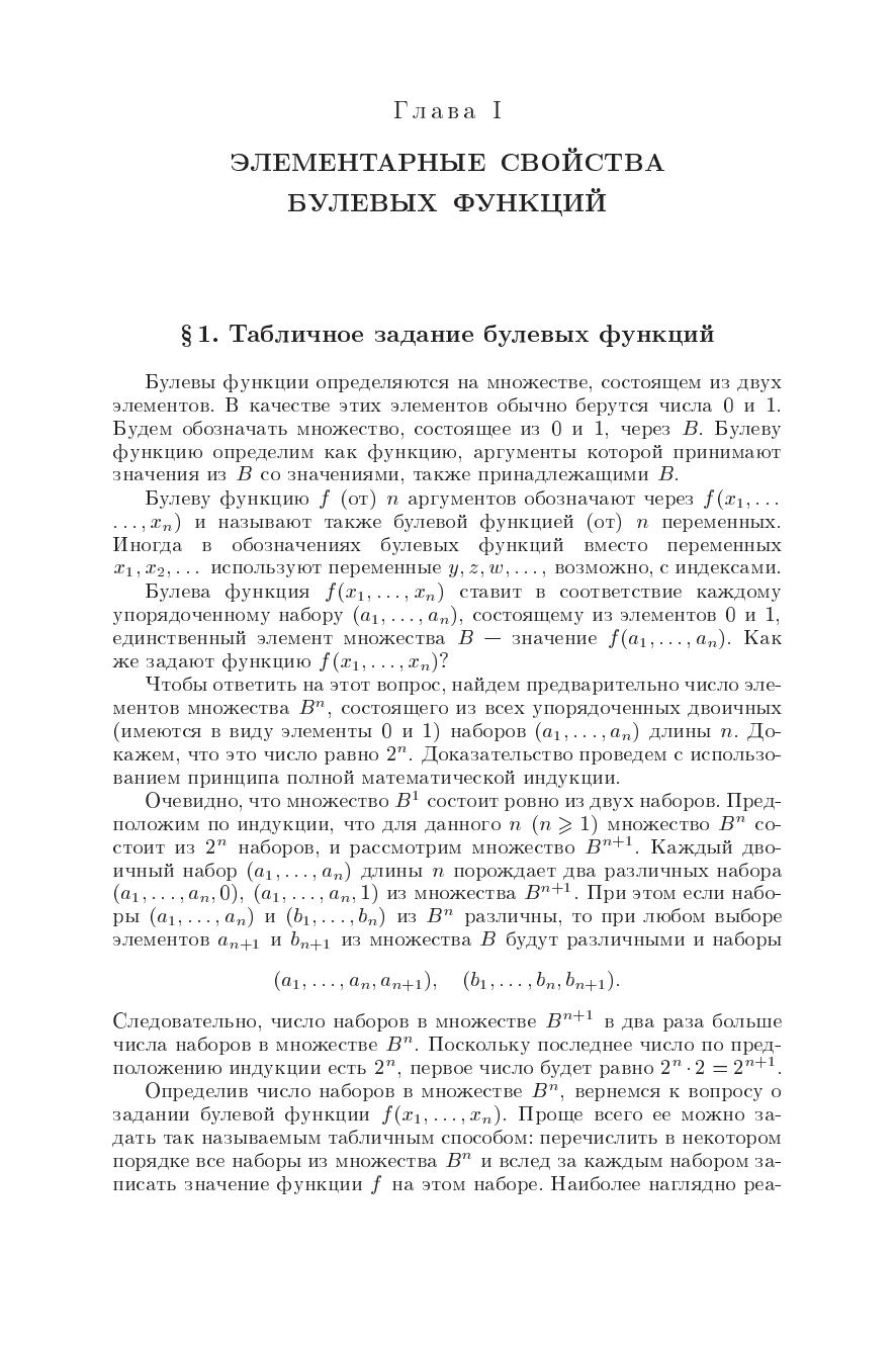 Брошюра знакомит читателя с булевыми функциями - одним из важнейших классов дискретных функций. В ней излагаются основные понятия теории булевых функций, дказывается критерий функциональной полноты и рассматриваются вопросы сложности реализации булевых функций.Брошюра предназначна для школьников старших классов и студентов первых курсов.