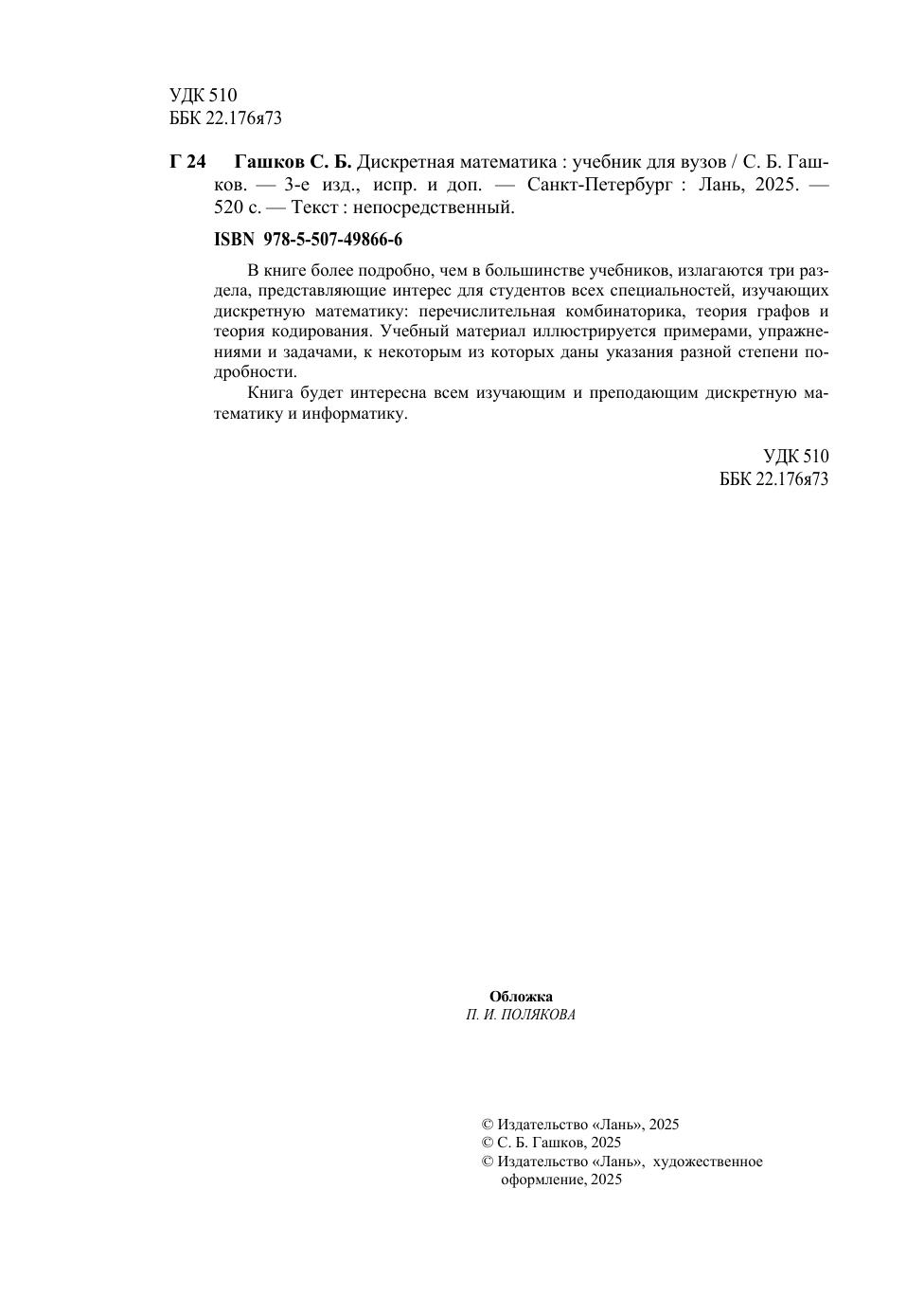 В книге более подробно, чем в большинстве учебников, излагаются три раздела, представляющие интерес для студентов всех специальностей, изучающих дискретную математику: перечислительная комбинаторика, теория графов и теория кодирования. Учебный материал иллюстрируется примерами, упражнениями и задачами, к некоторым из которых даны указания разной степени подробности. Книга будет интересна всем изучающим и преподающим дискретную математику и информатику.