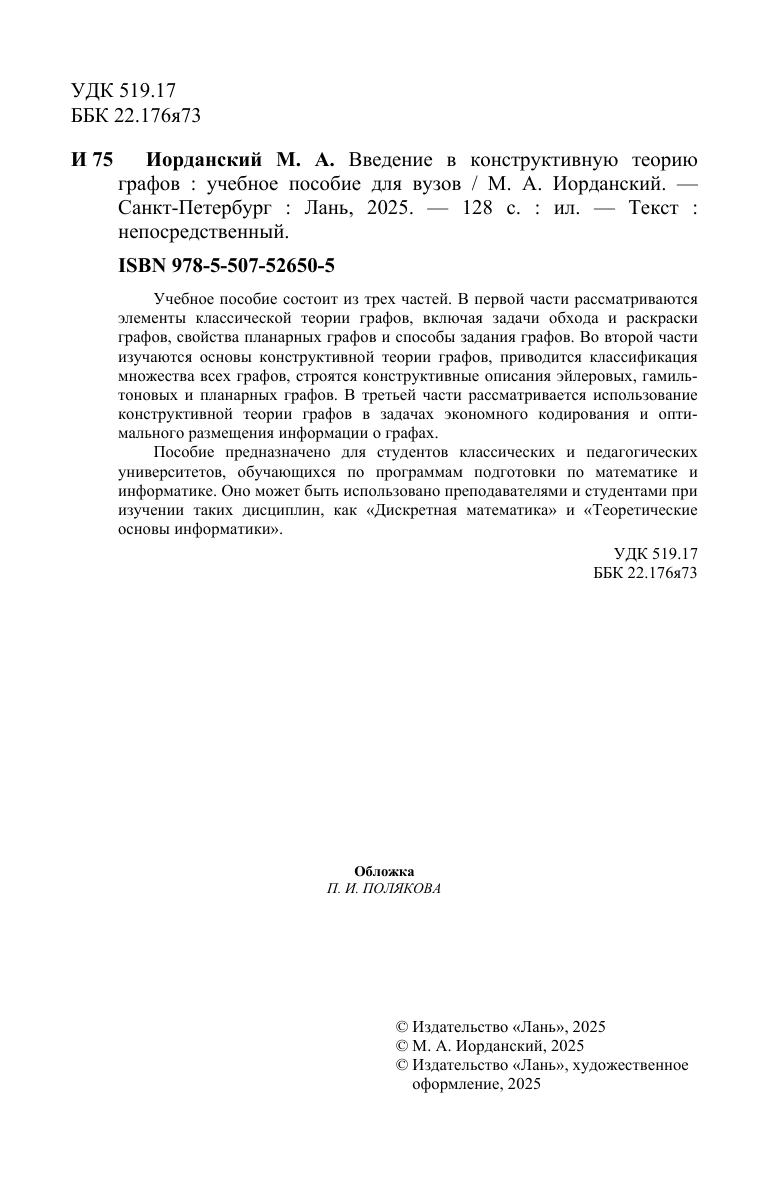Учебное пособие состоит из трех частей. В первой части рассматриваются элементы классической теории графов, включая задачи обхода и раскраски графов, свойства планарных графов и способы задания графов. Во второй части изучаются основы конструктивной теории графов, приводится классификация множества всех графов, строятся конструктивные описания эйлеровых, гамильтоновых и планарных графов. В третьей части рассматривается использование конструктивной теории графов в задачах экономного кодирования и оптимального размещения информации о графах. Пособие предназначено для студентов классических и педагогических университетов, обучающихся по программам подготовки по математике и информатике. Оно может быть использовано преподавателями и студентами при изучении таких дисциплин, как «Дискретная математика» и «Теоретические основы информатики».