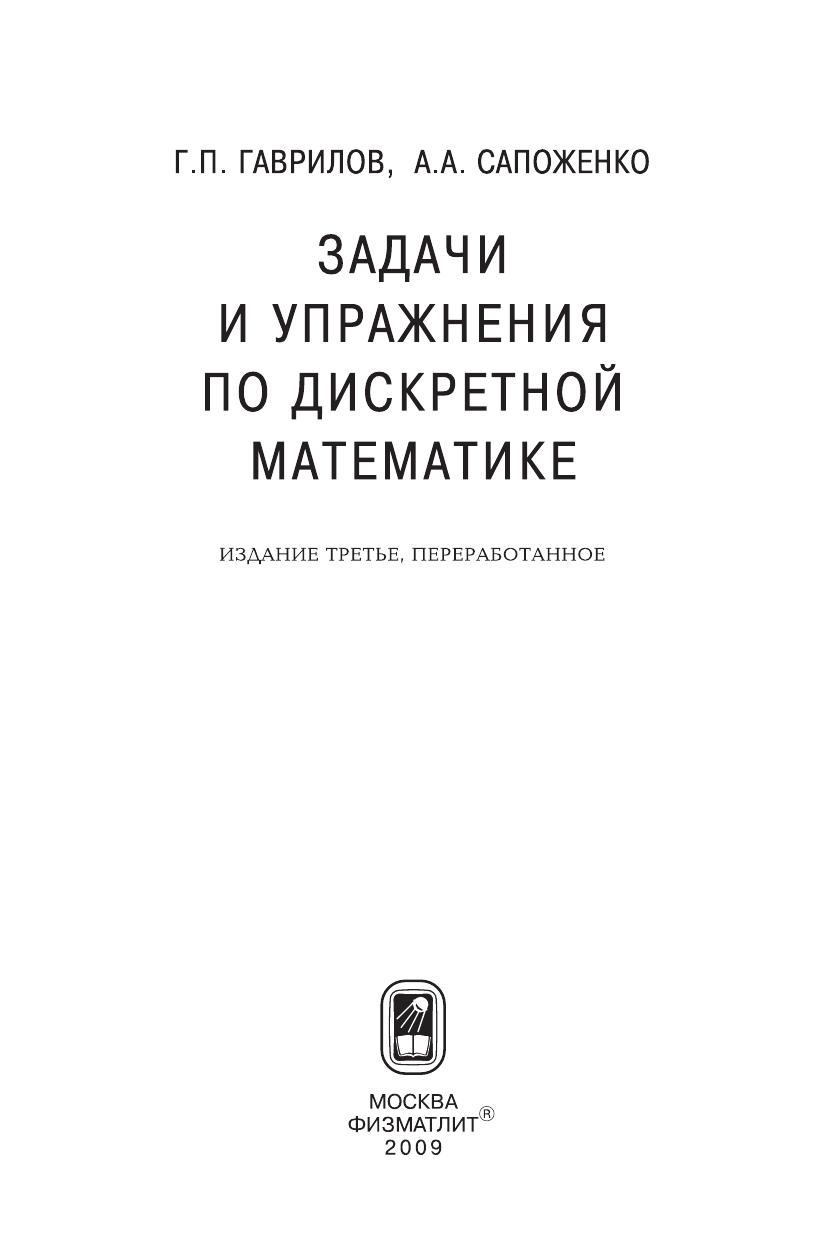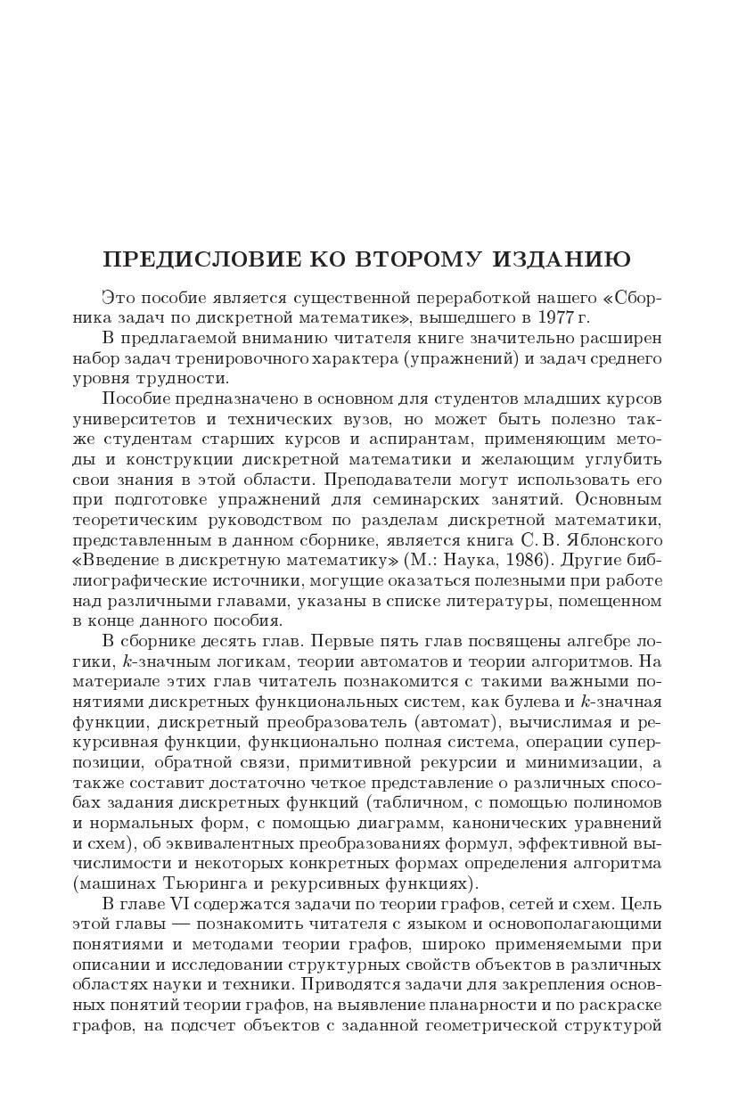 Впо собие включены задачи и упражнения по конечнозначным логикам (в том числе по алгебре логики), по теории автоматов, теории алгоритмов, теории графов и сетей, теории кодирования, комбинаторике, минимизации булевых функций и синтезу схем и формул, реализующих булевы функции. Имеются задачи, предназначенные для первоначальной проработки и освоения методов дискретной математики, а также задачи для углубленного изучения предмета.Второе издание — 1992 г.Для студентов и преподавателей университетов и технических вузов, в которых изучается дискретная математика.