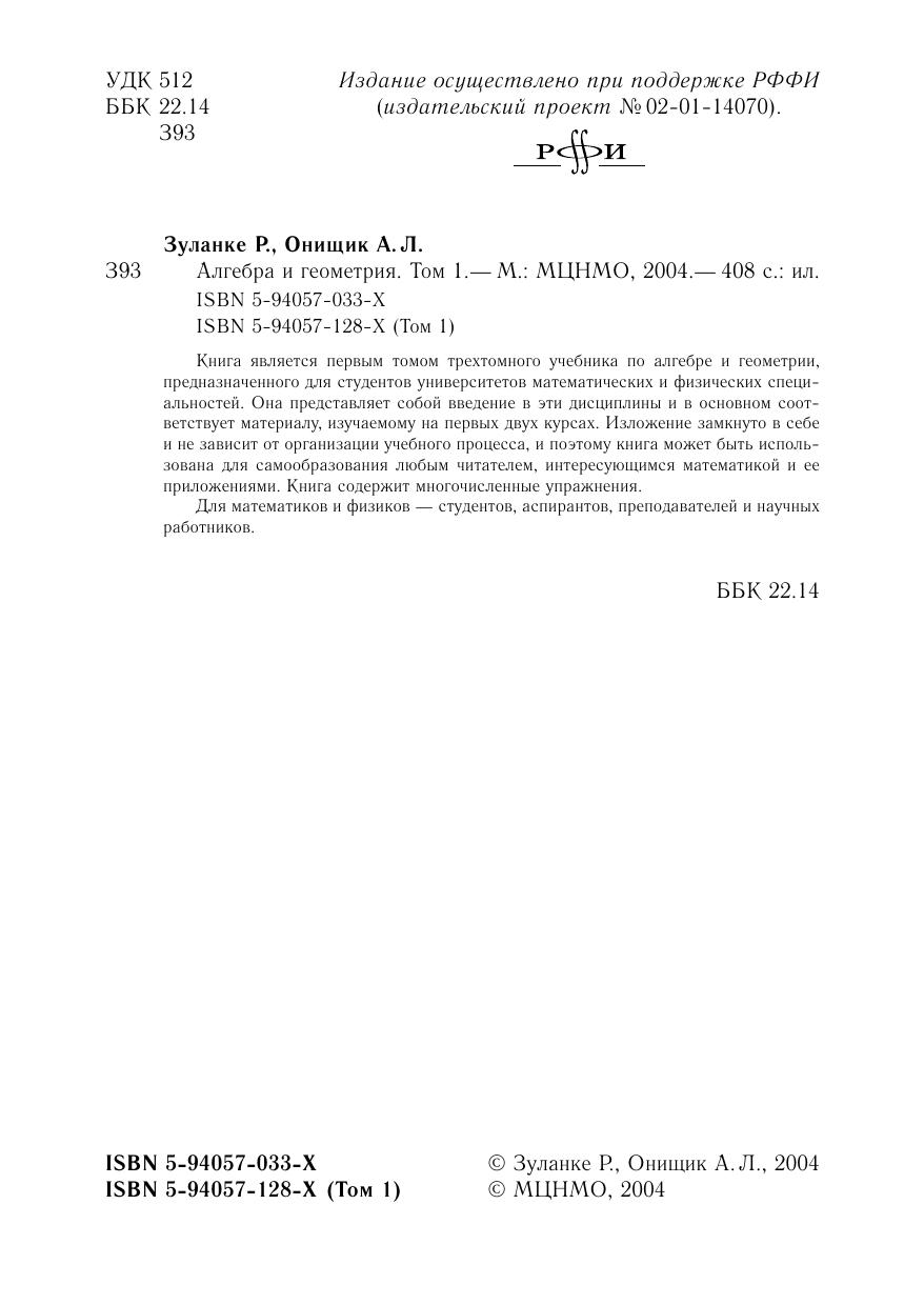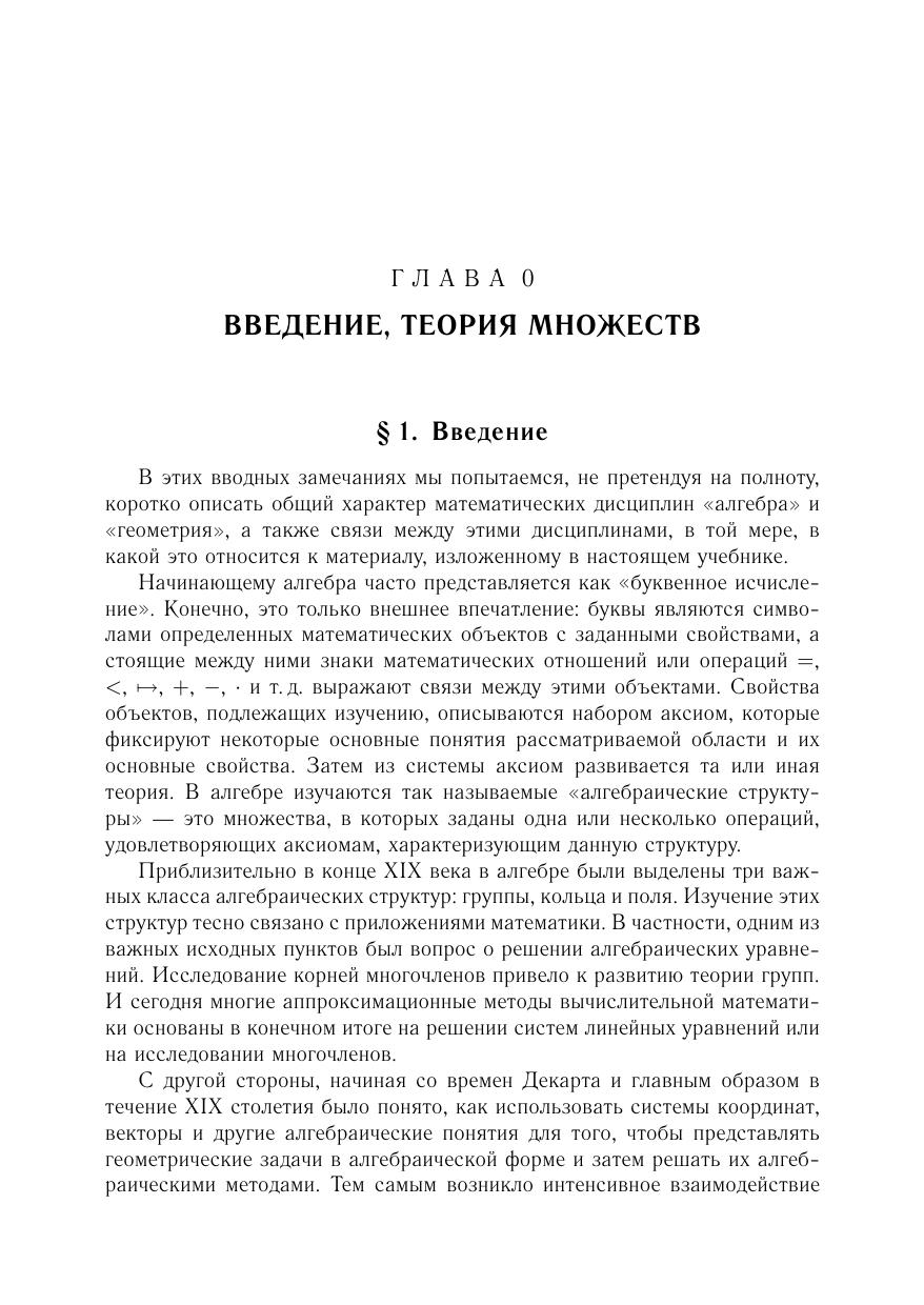 Книга является первым томом трехтомного учебника по алгебре и геометрии, предназначенного для студентов университетов математических и физических специальностей. Она представляет собой введение в эти дисциплины и в основном соответствует материалу, изучаемому на первых двух курсах. Изложение замкнуто в себе и не зависит от организации учебного процесса, и поэтому книга может быть использована для самообразования любым читателем, интересующимся математикой и ее приложениями. Книга содержит многочисленные упражнения.Для математиков и физиков — студентов, аспирантов, преподавателей и научных работников.
