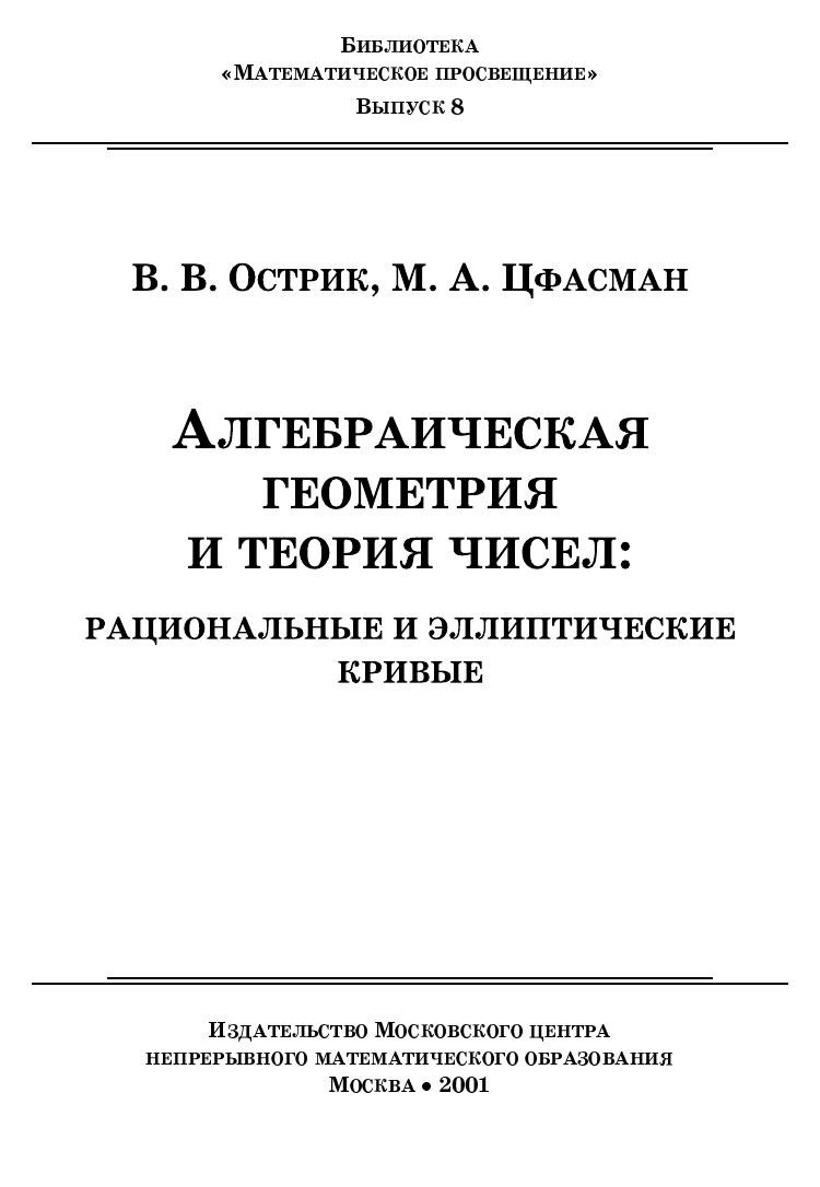 Алгебраическая геометрия и теория чисел: рациональные и эллиптические кривые Острик В.В., Цфасман М.А.
