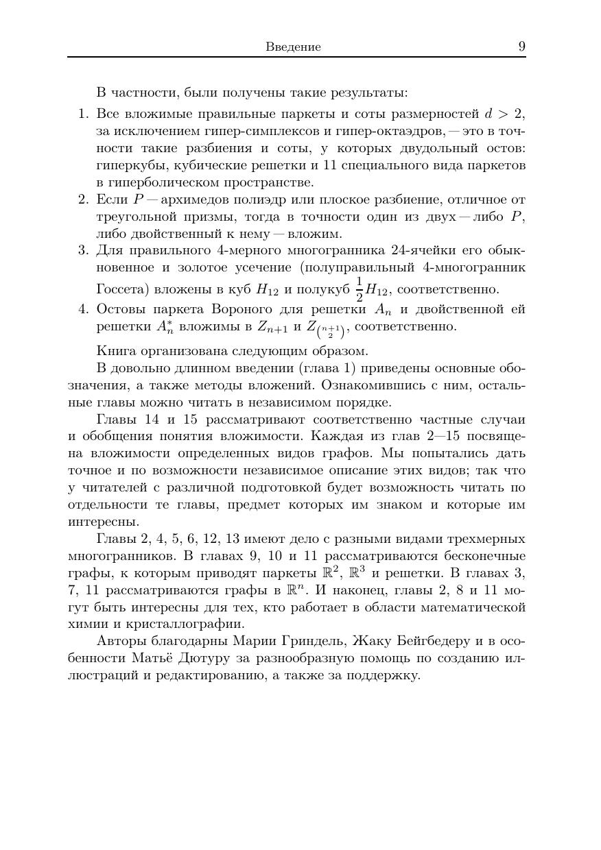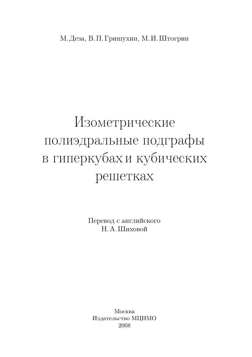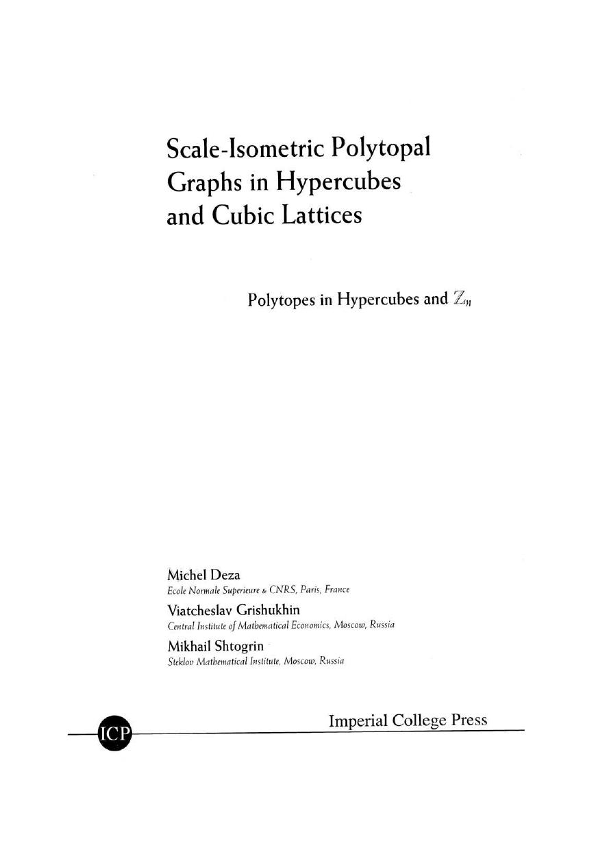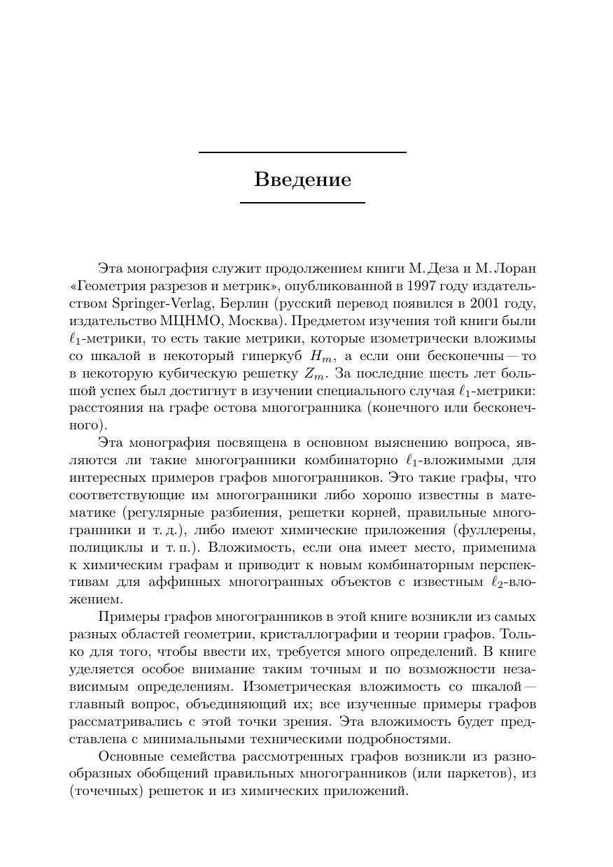Предмет этой монографии есть идентификация полиэдральных графов, которые могут быть вложены в некоторый гиперкуб или кубическую решетку так, что графическое расстояние соответствует квадрату евклидова расстояния. Рассматриваются различные обобщения правильных многогранников (включая некоторые 4-многогранники) и разбиений пространства, а также многогранников, возникающих в химических приложениях. Книга может служить справочником по таким многогранникам.Книга развивает материал, изложенный в ранее опубликованной монографии М. Деза и М. Лоран «Геометрия разрезов и метрик» (М.: МЦНМО, 2001).