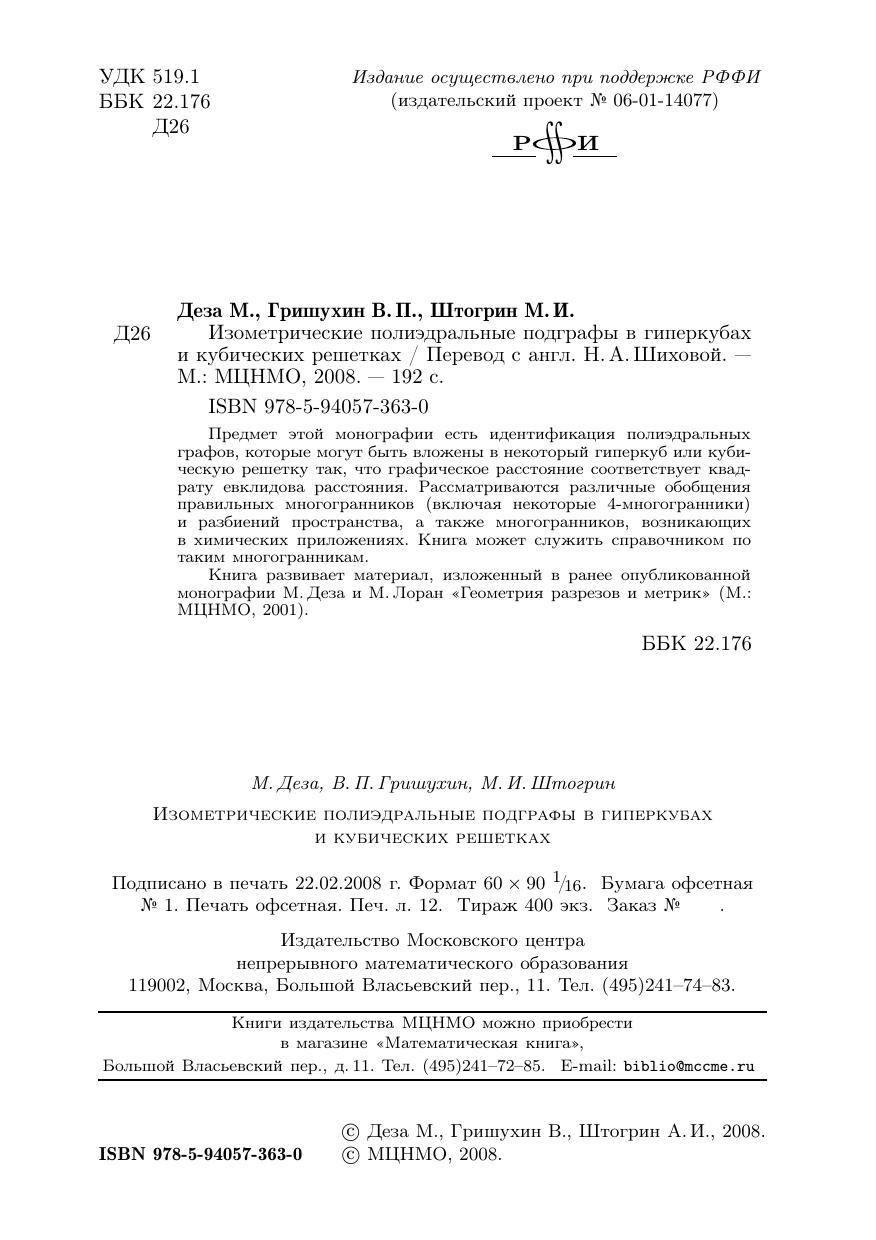 Авторы: Деза М., Гришухин В.П., Штогрин М.И.