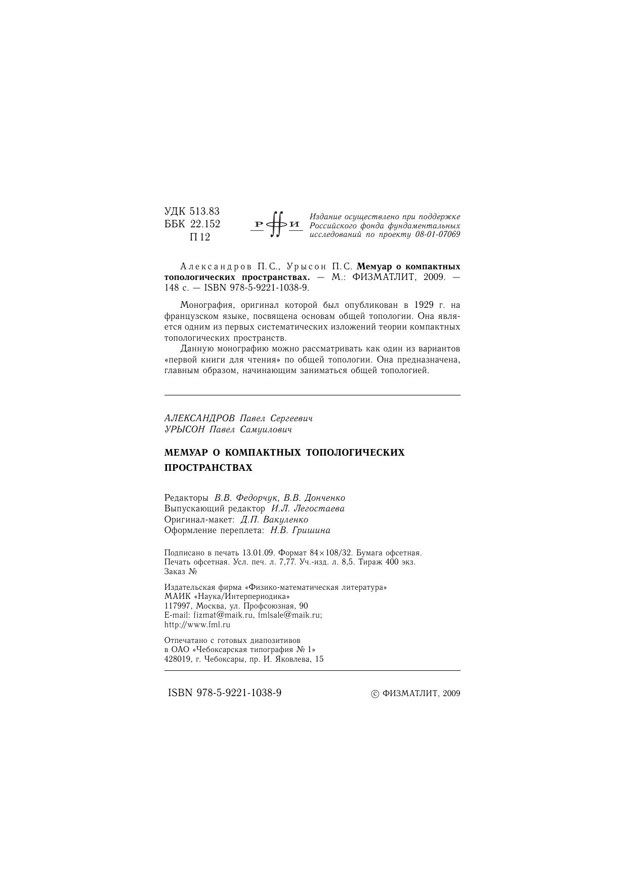Авторы: Александров П.С., Урысон П.С.