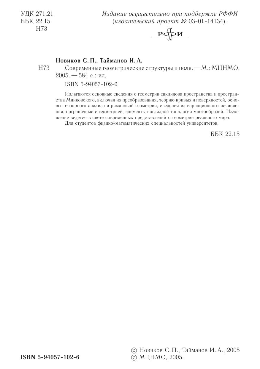 Излагаются основные сведения о геометрии евклидова пространства и пространства Минковского, включая их преобразования, теорию кривых и поверхностей, основы тензорного анализа и римановой геометрии, сведения из вариационного исчисления, пограничные с геометрией, элементы наглядной топологии многообразий. Изложение ведется в свете современных представлений о геометрии реального мира.Для студентов физико-математических специальностей университетов.