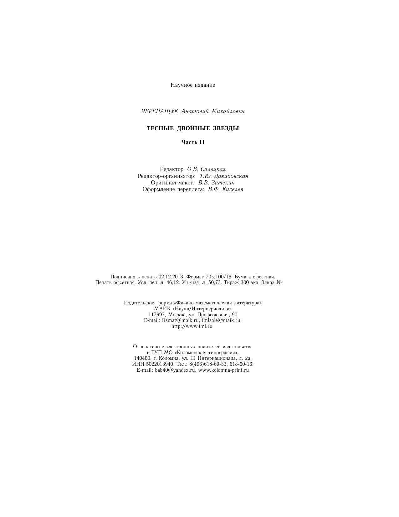 Тесные двойные звезды. В 2 ч. Часть II