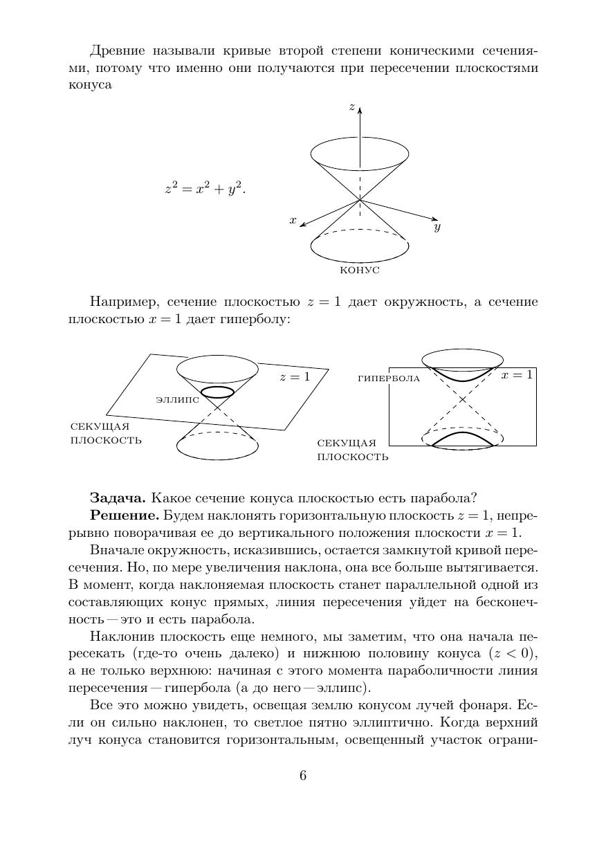 Эта брошюра, написанная выдающимся современным математиком академиком РАН В.И.Арнольдом, основана на прочитанных автором популярных лекциях для старшеклассников. В живой и увлекательной форме излагаются основы теории алгебраических кривых в самых разных аспектах: от свойств конических сечений и до шестнадцатой проблемы Гильберта и понятия рода комплексной кривой. Рекомендуется всем интересующимся математикой, начиная со старшеклассников и студентов младших курсов.