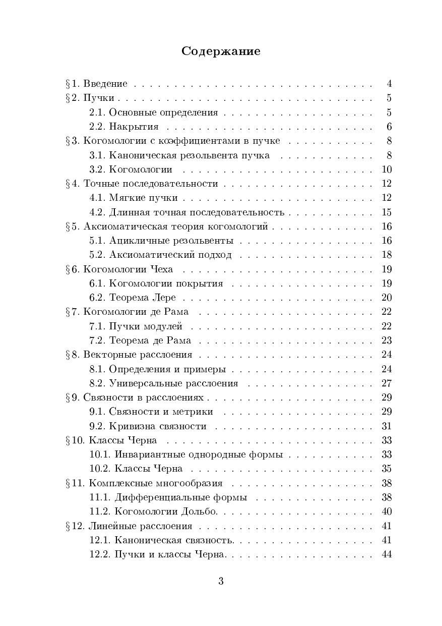 Пучки, расслоения и их инварианты — это фундаментальные понятия современной геометрии, позволяющие исследовать глобальные свойства многообразий.Книга содержит основные определения и первые шаги этой теории. Подробно обсуждаются, в частности, когомологии со значениями в пучках и классы Черна расслоений.Книга является записью курса лекций, которые автор неоднократно читал для студентов 2–4 курсов Независимого московского университета.