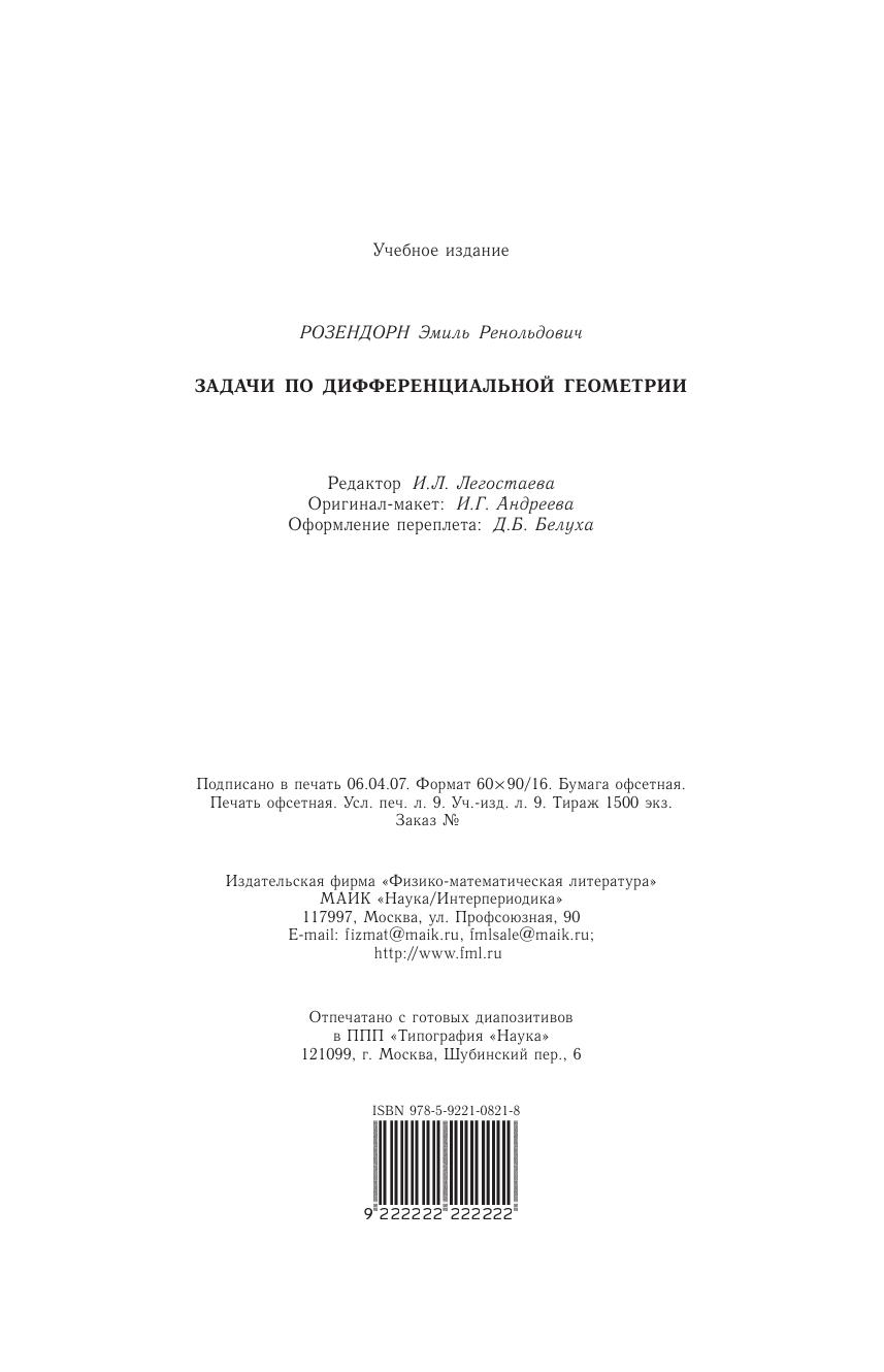 Этот задачник содержит задачи по теории кривых и поверхностей в трехмерном евклидовом пространстве. Для студентов физико-математических факультетов университетов, педагогических институтов и технических университетов.